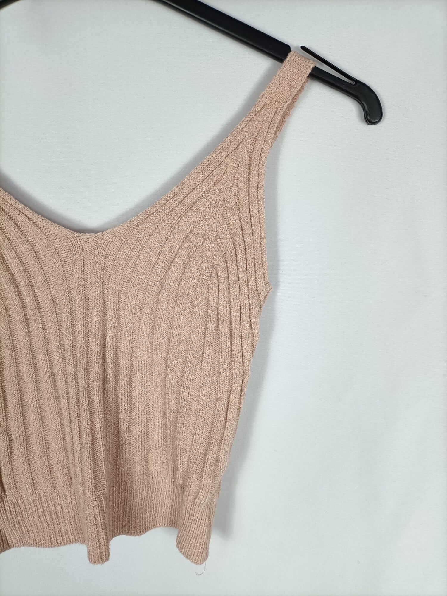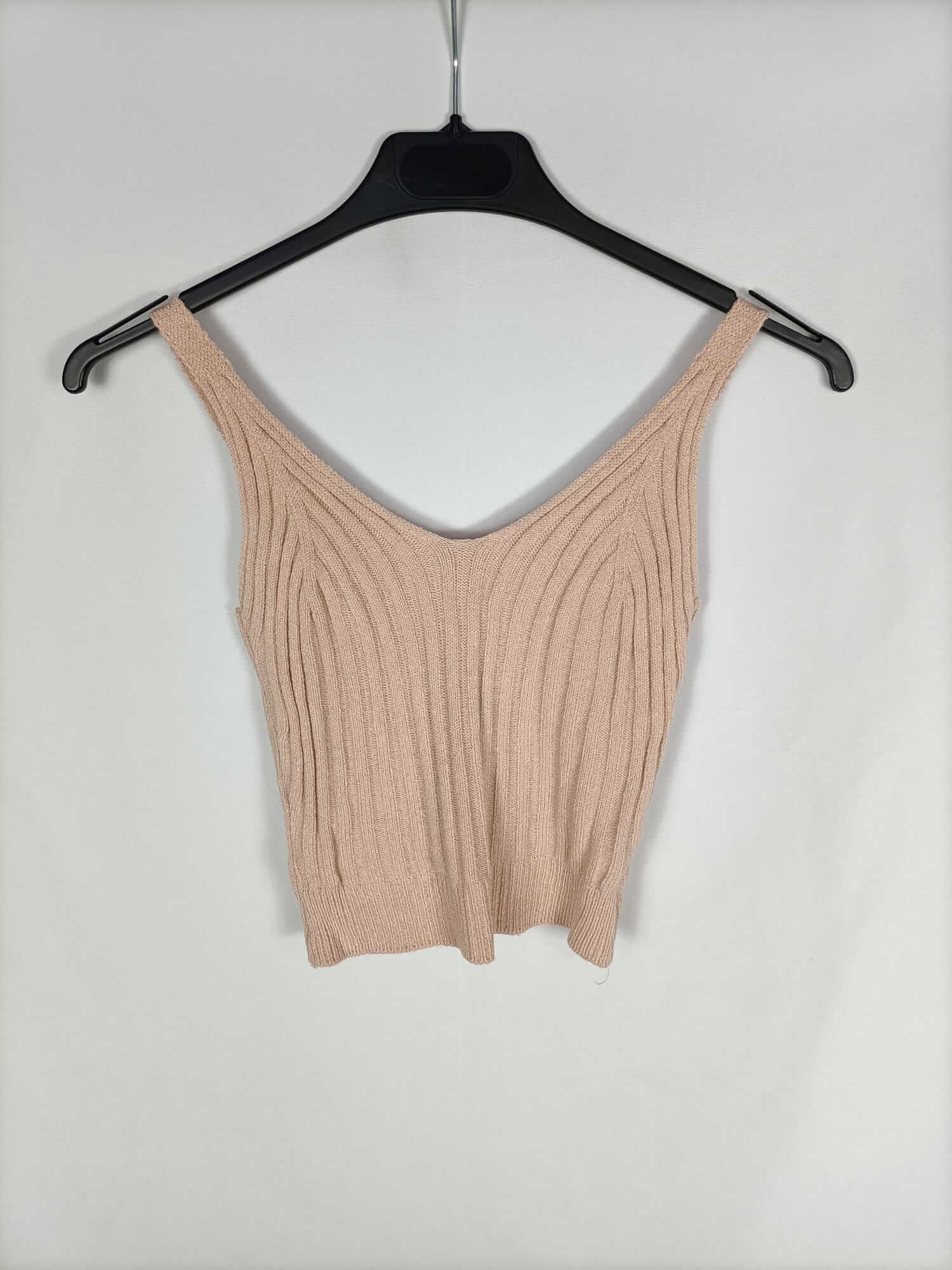 Otras. Tu (s). Top elástico rosa palo de punto de canalé. Elastico. Largo 38 cm