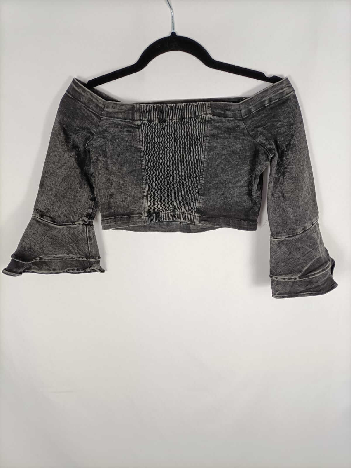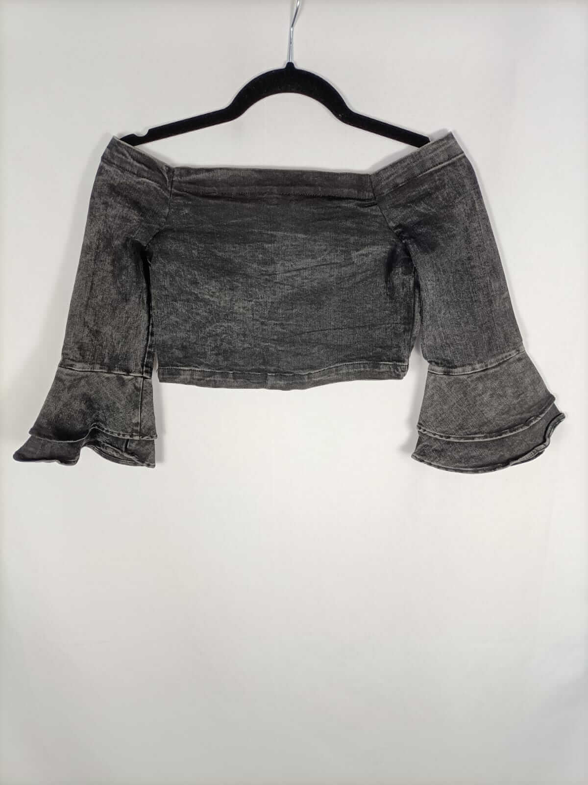 Otras. Tu (s). Top negro cielo barco estilo desgastado y tejido denim. Elástico. Largo 24 cm