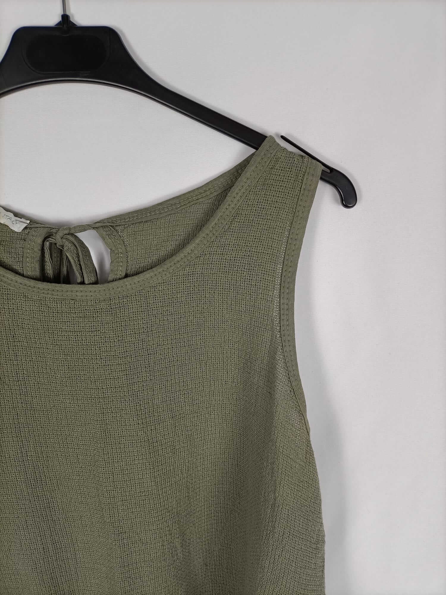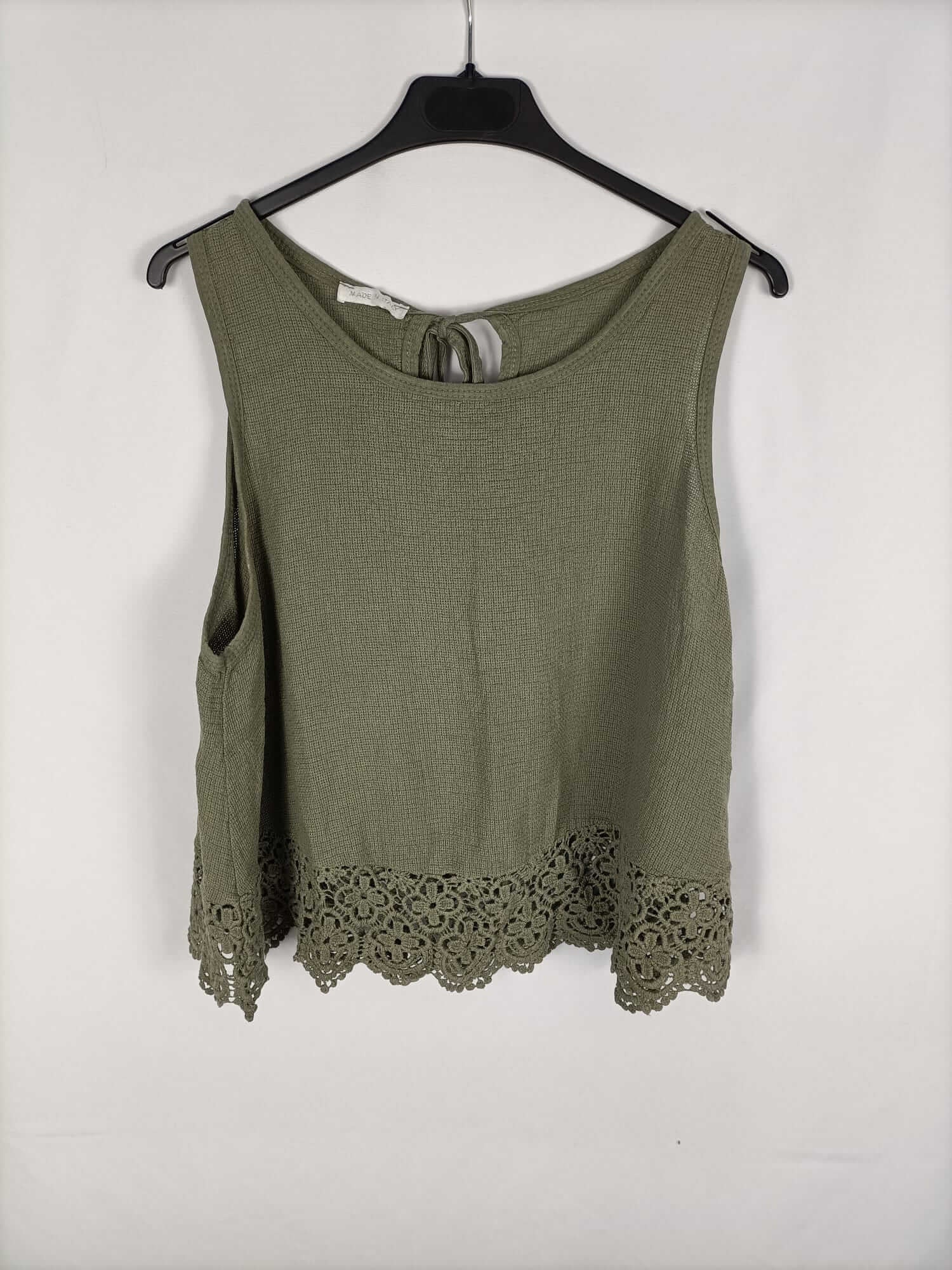 Otras. Top verde fluido con detalle de croché en la parte de abajo. Elastico. Elástico. Largo 50 cm