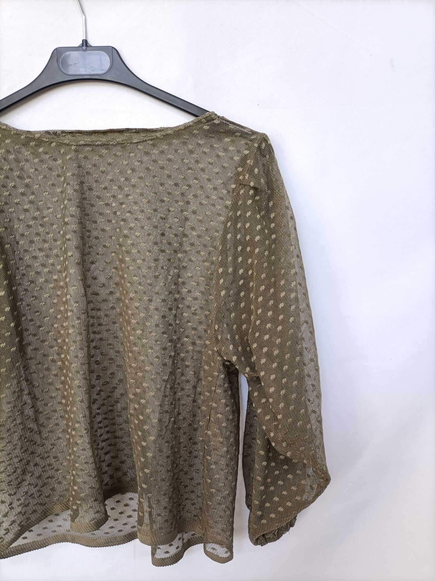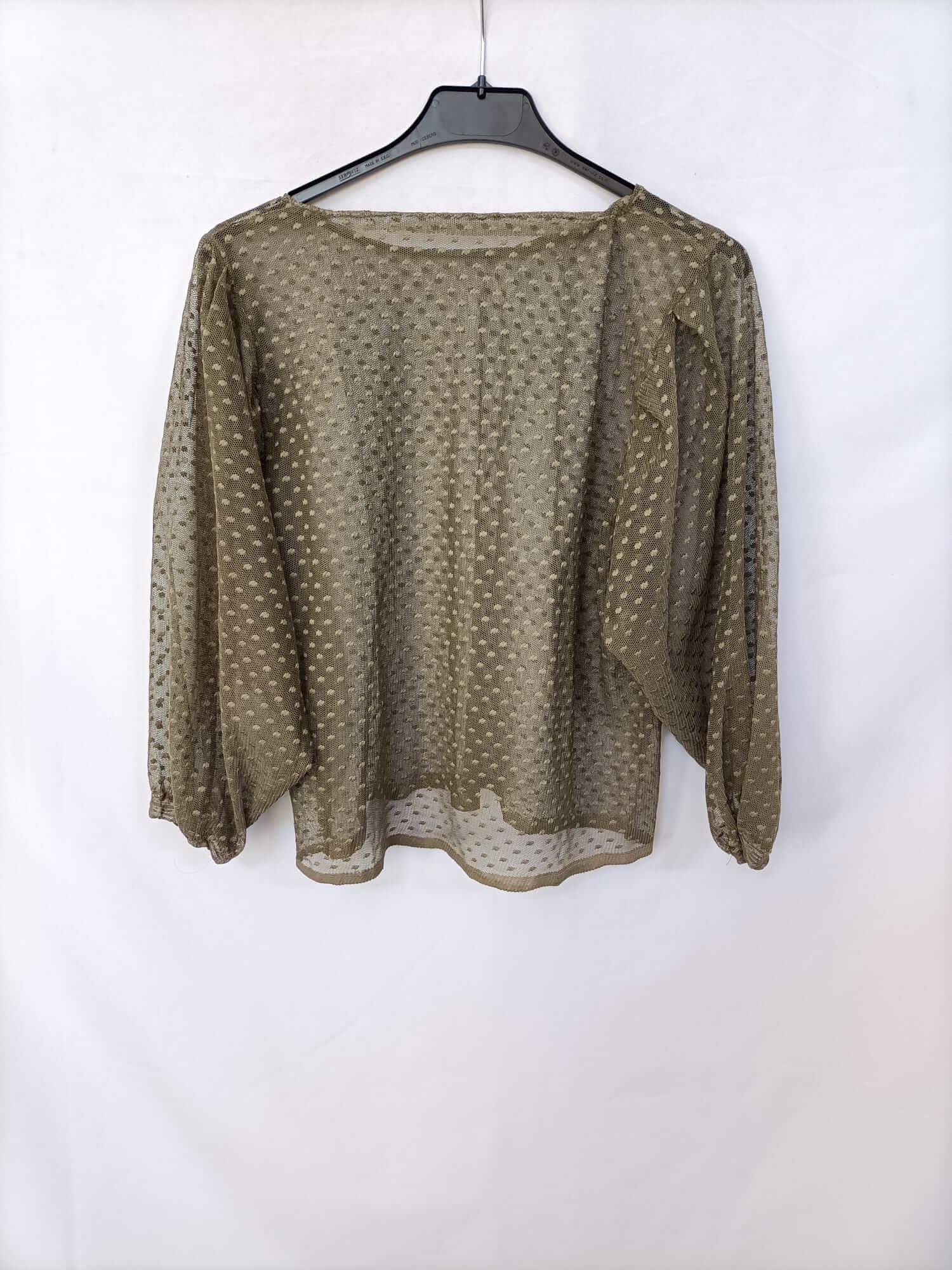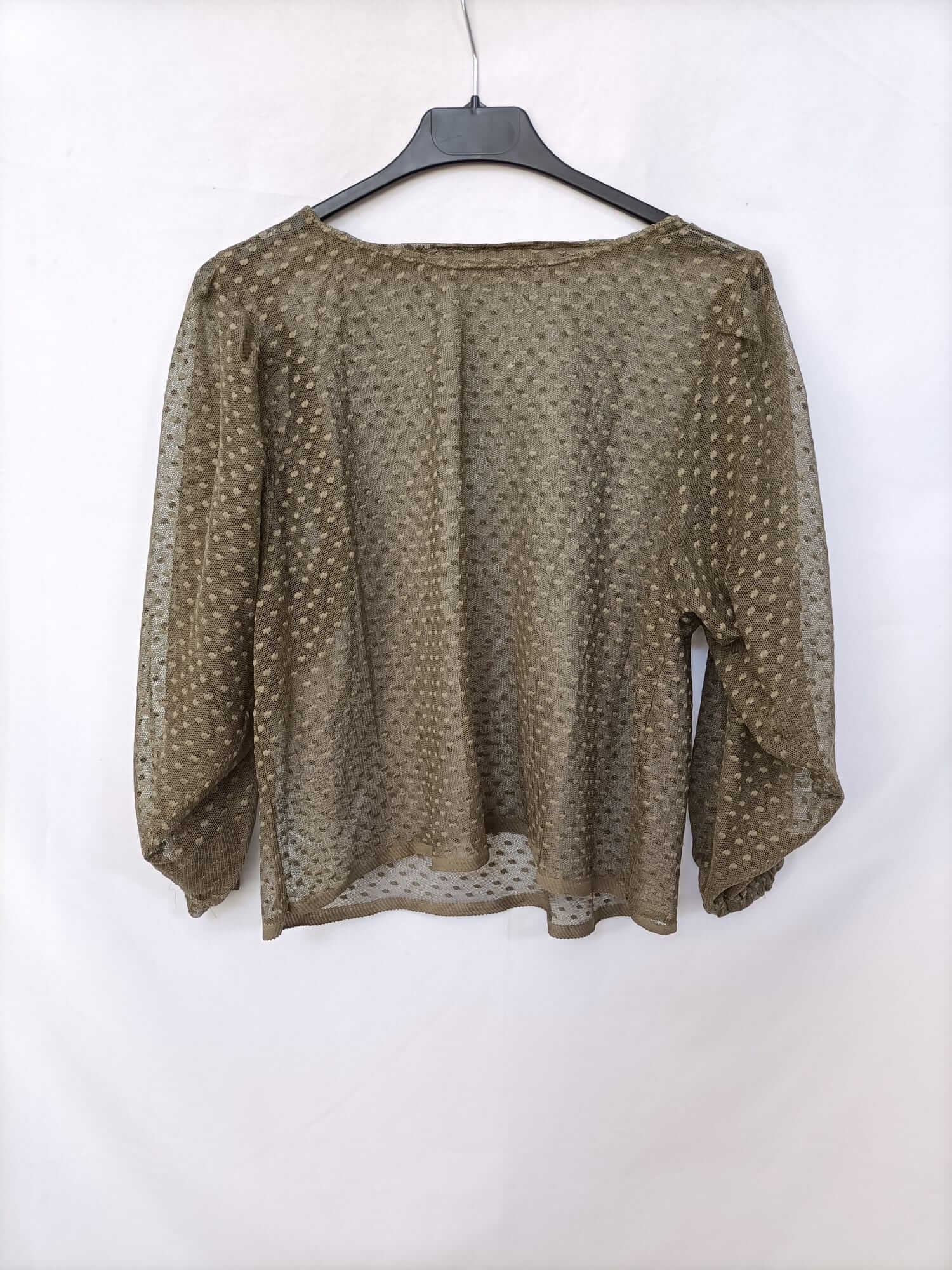Otras. Tu. Top verde de plumeti semitransparente con las mangas abullonadas. Elástico. Largo 52 cm
