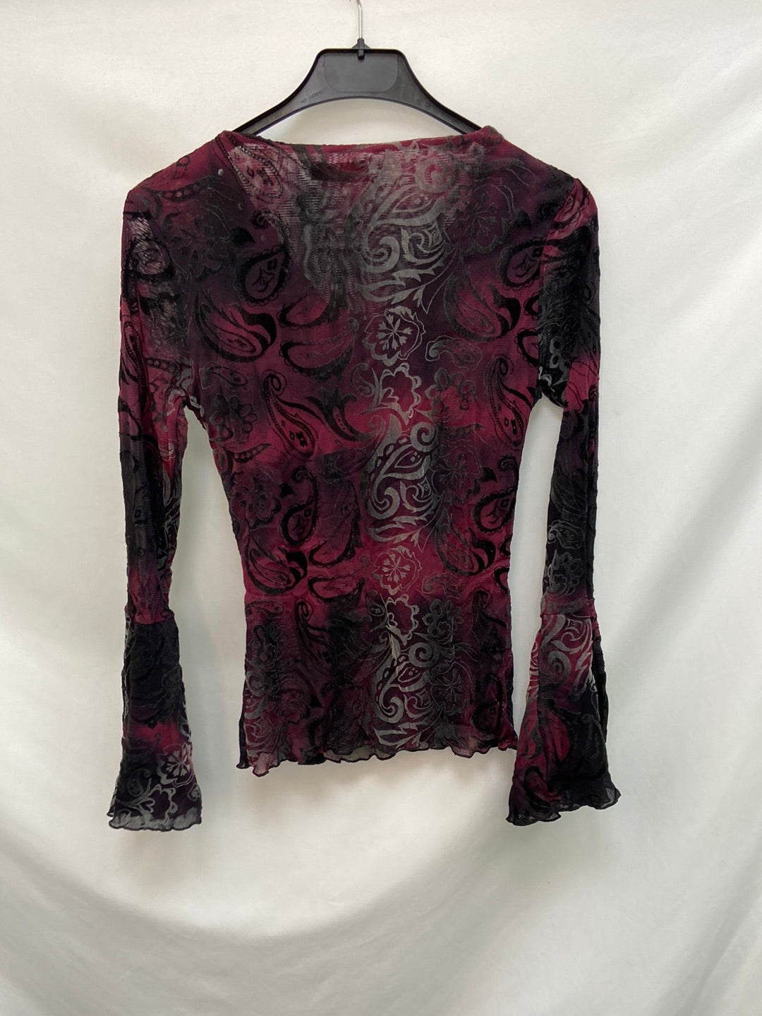 PATRICK. Top burdeos y negros con escote en pico de color camel antelina mangas acampanadas ajustable elástico ancho 40 largo 58
