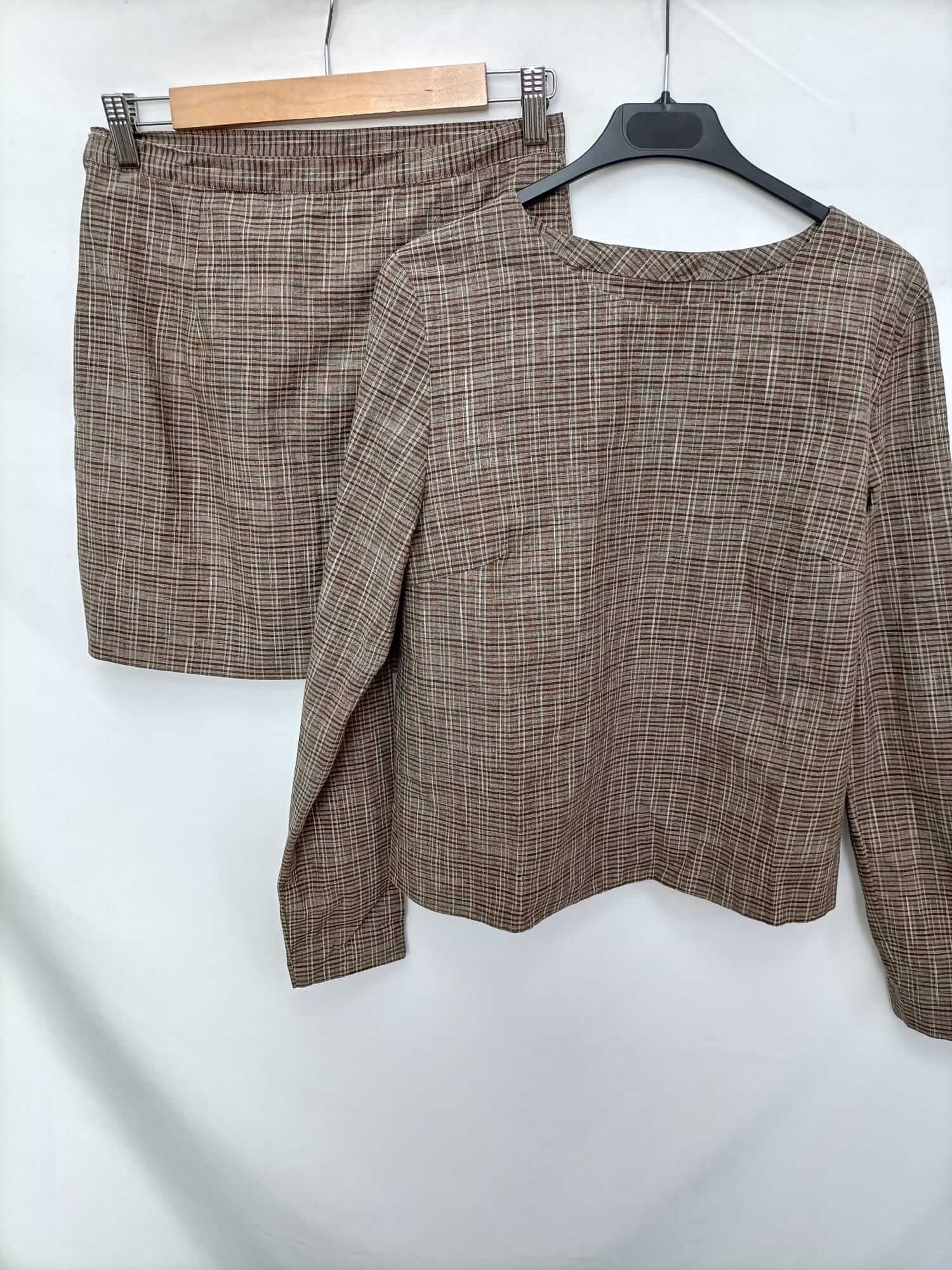 Otras. Tu. (M). Total look de falda y top en cuadros en tono marrones. No elástica ninguna de la partes. Falda: cintura 38 cm largo 43 cm. Blusa: de sisa a sisa 49 cm largo 56 cm