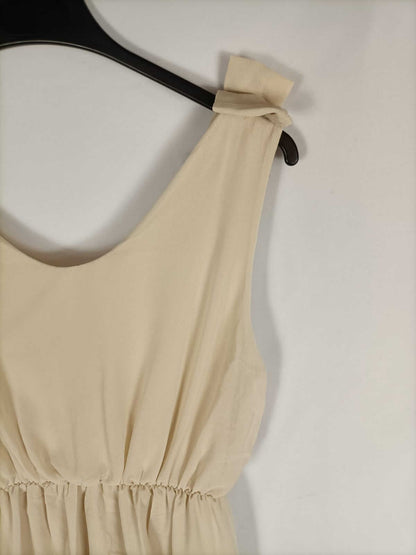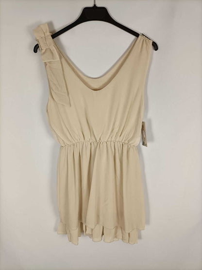 Otras. Tu. NUEVO CON ETIQUETA. Vestido beige fluido con cintura elástica y detalle de lazada en una manga. De sisa a sisa 52 cm largo 82 cm.
