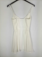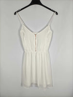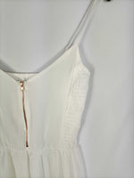 Otras. Tu (s/m). Vestido blanco fluido con los laterales de nido de abeja elásticos y cremallera frontal. tirantes ajustables. Largo 84 cm