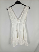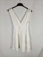 Otras.m . vestido corto blanco de lino. Fluido. Elástico debajo del pecho. Largo 84 cmv