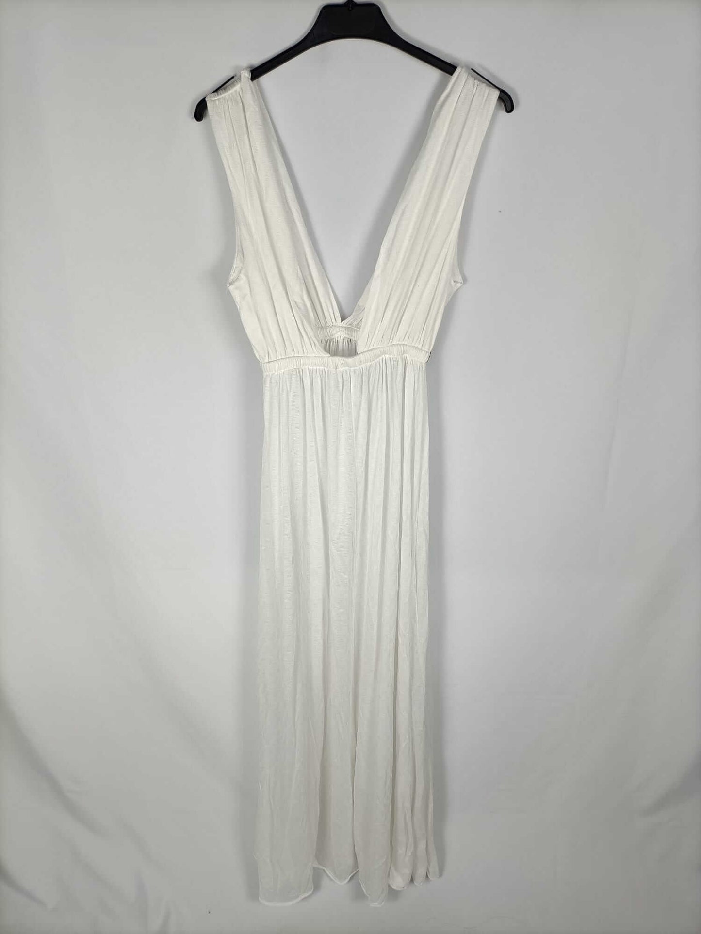 Otras. S. Vestido largo blanco corte griego con detalle debajo de pecho. Fluido y elástico. Largo 137 cm