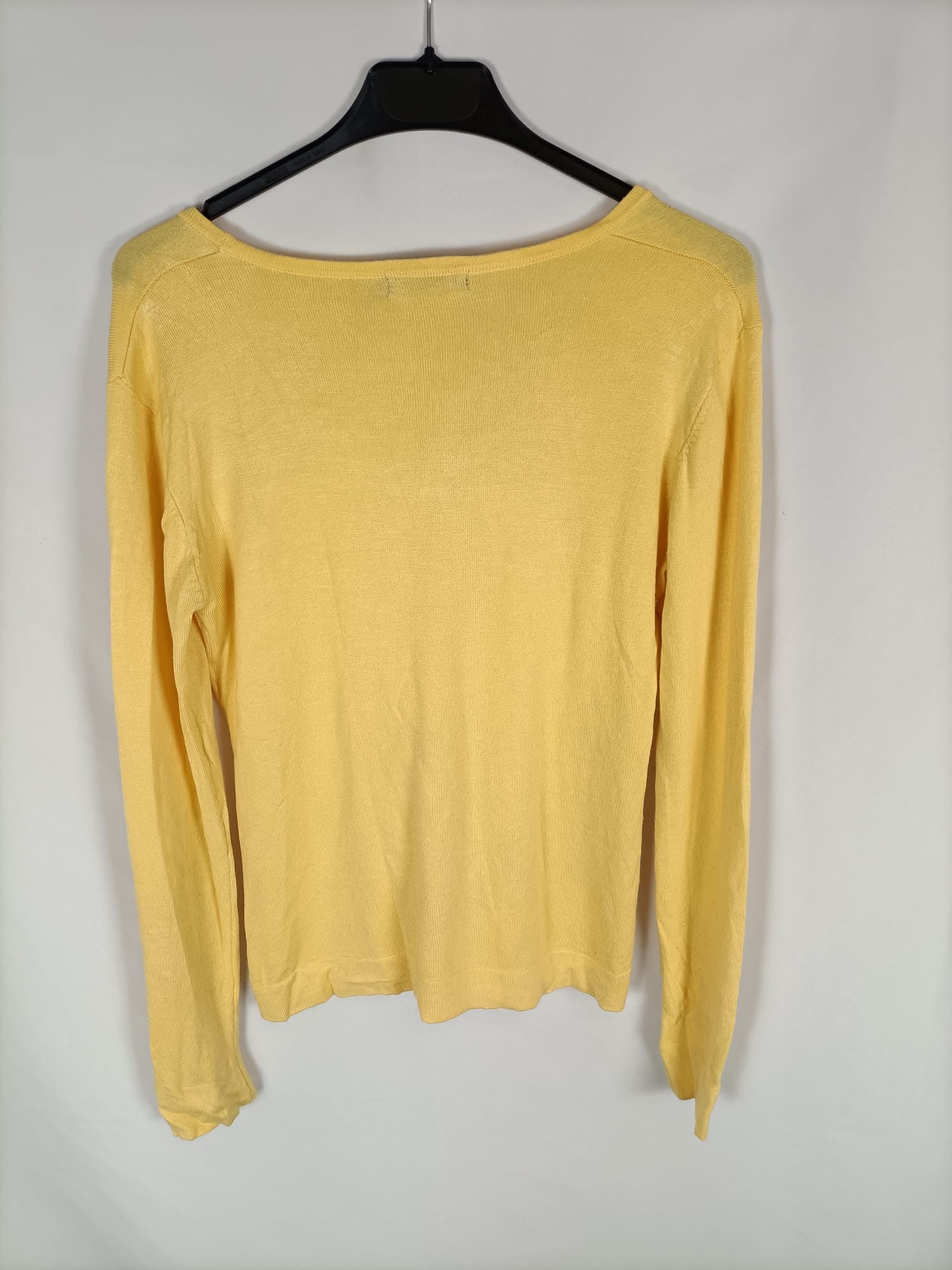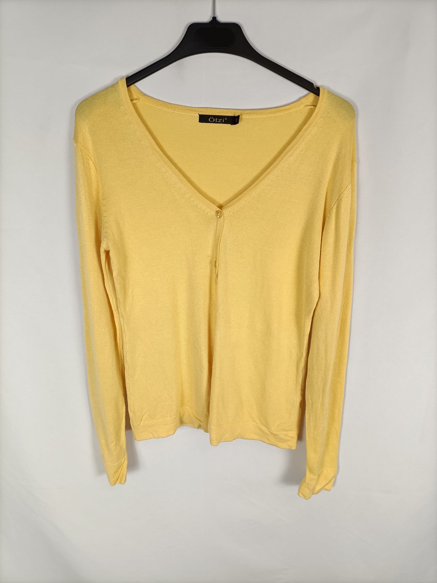Otzi. S. Rebeca amarilla elástica y gustosa. Abotonada. Largo 56 cm