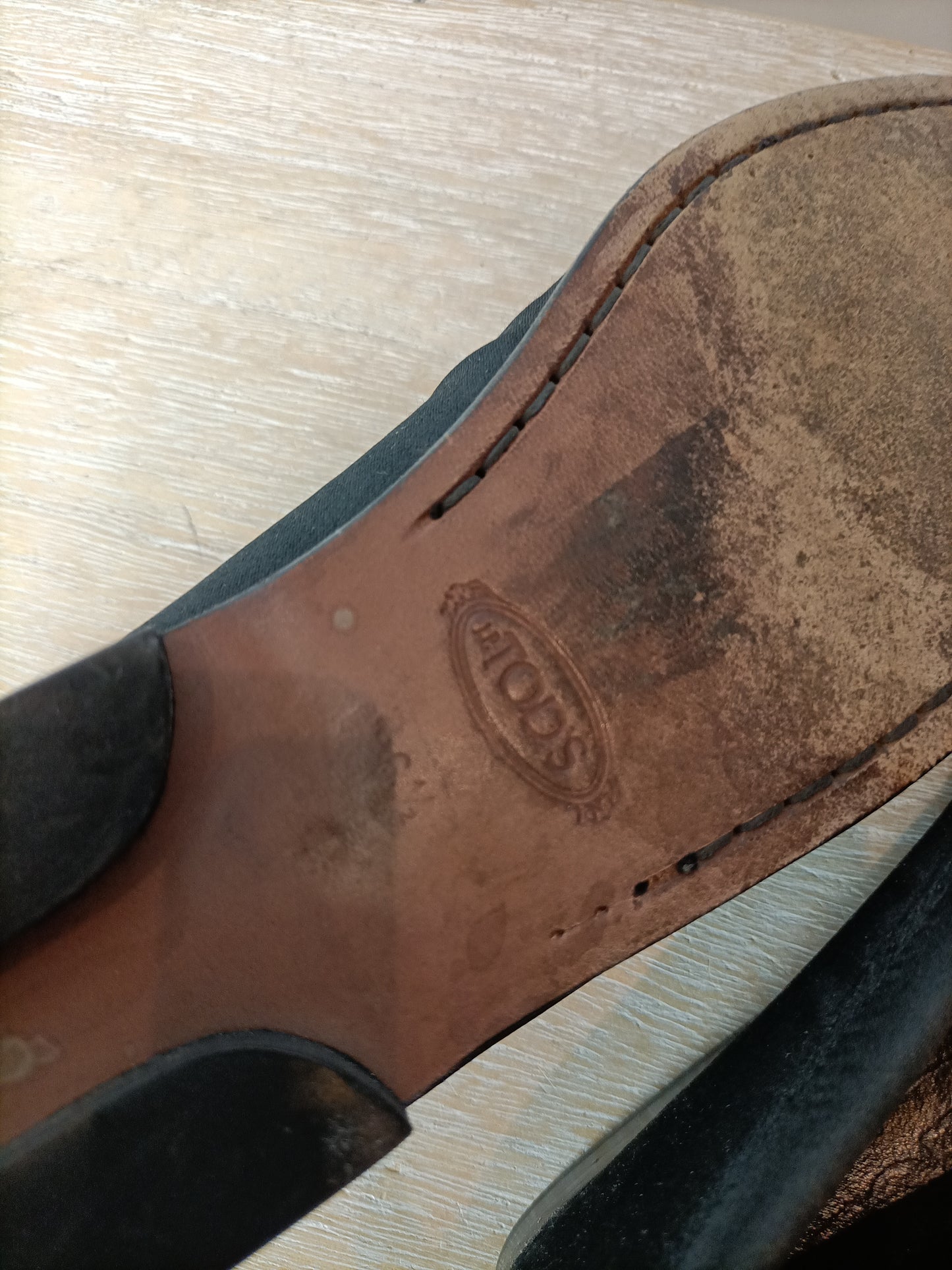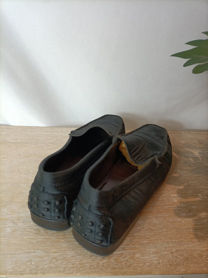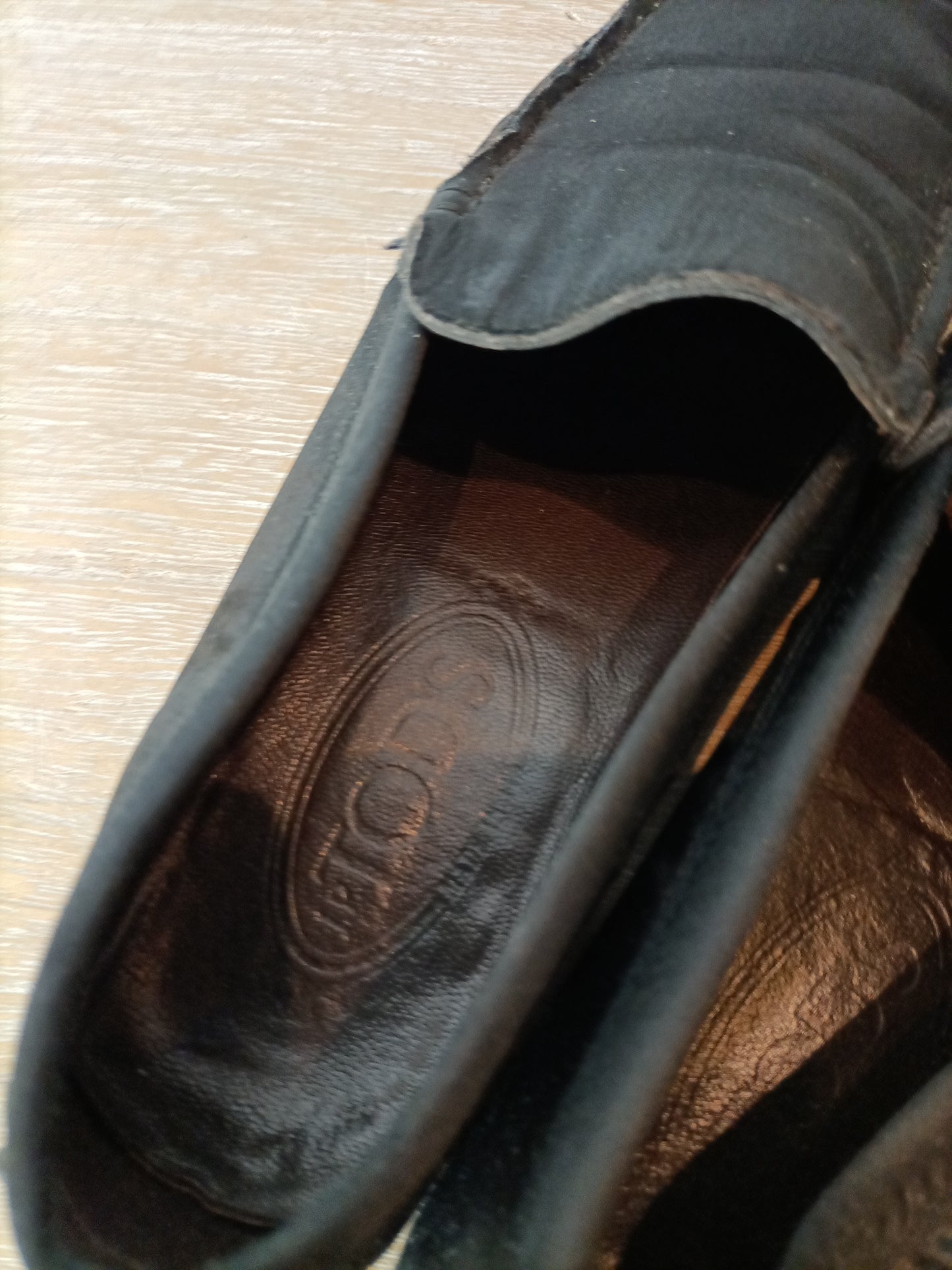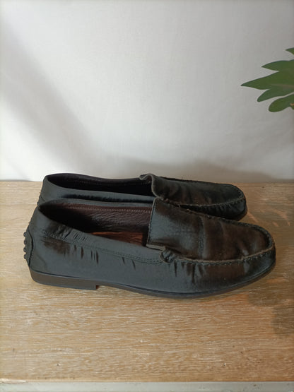 Mocasines negros tela. Tienen la tela con alguna marca de uso