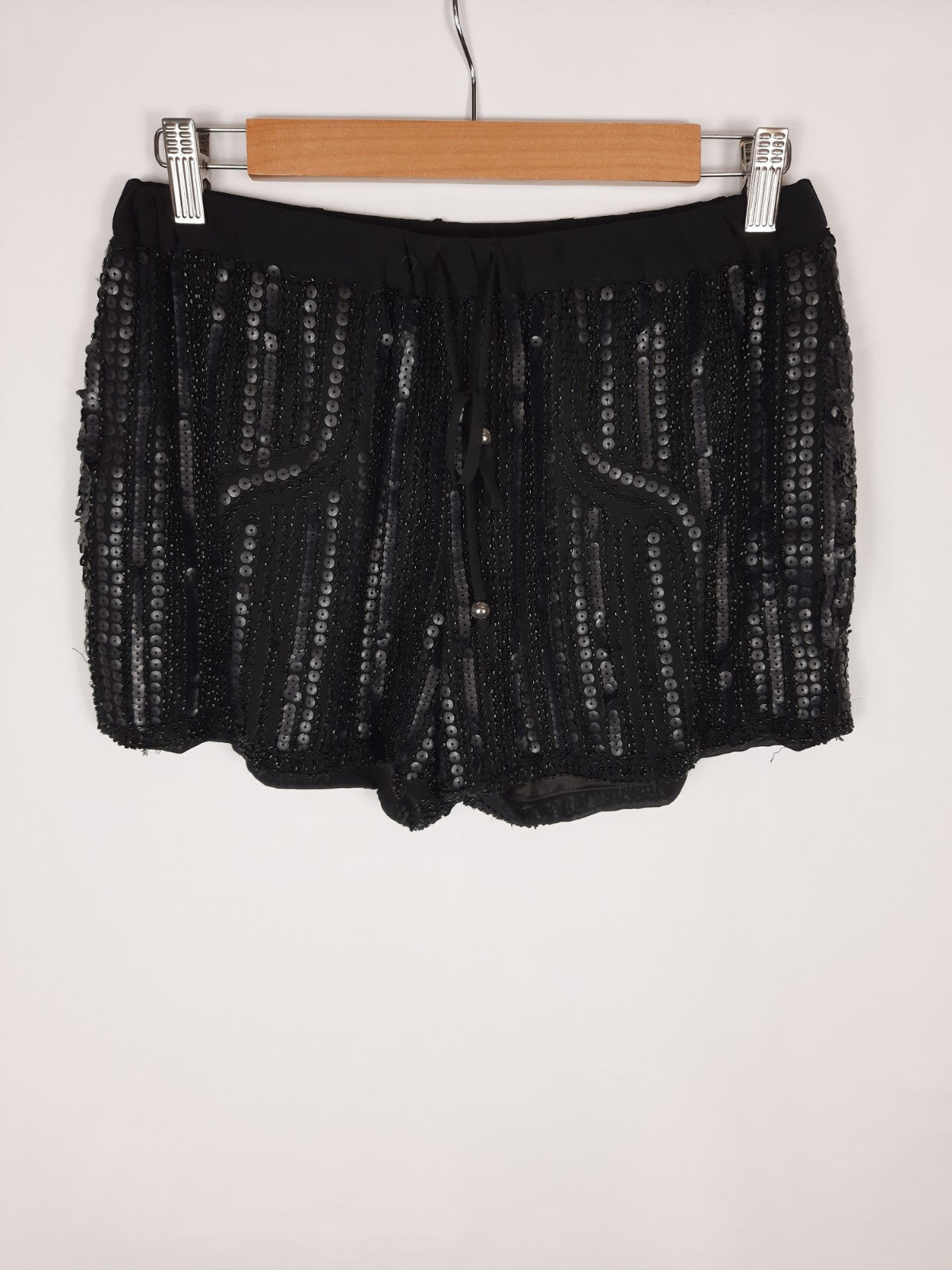 Shorts fluido de lentejuelas con cintura ajustable y elástica. Largo 33 cm