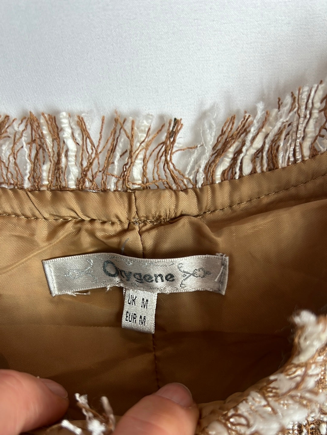 vestido corto de tejido tweed en tonos beiges. De sisa a sisa 43cm, cintura 35cm, largo 88cm