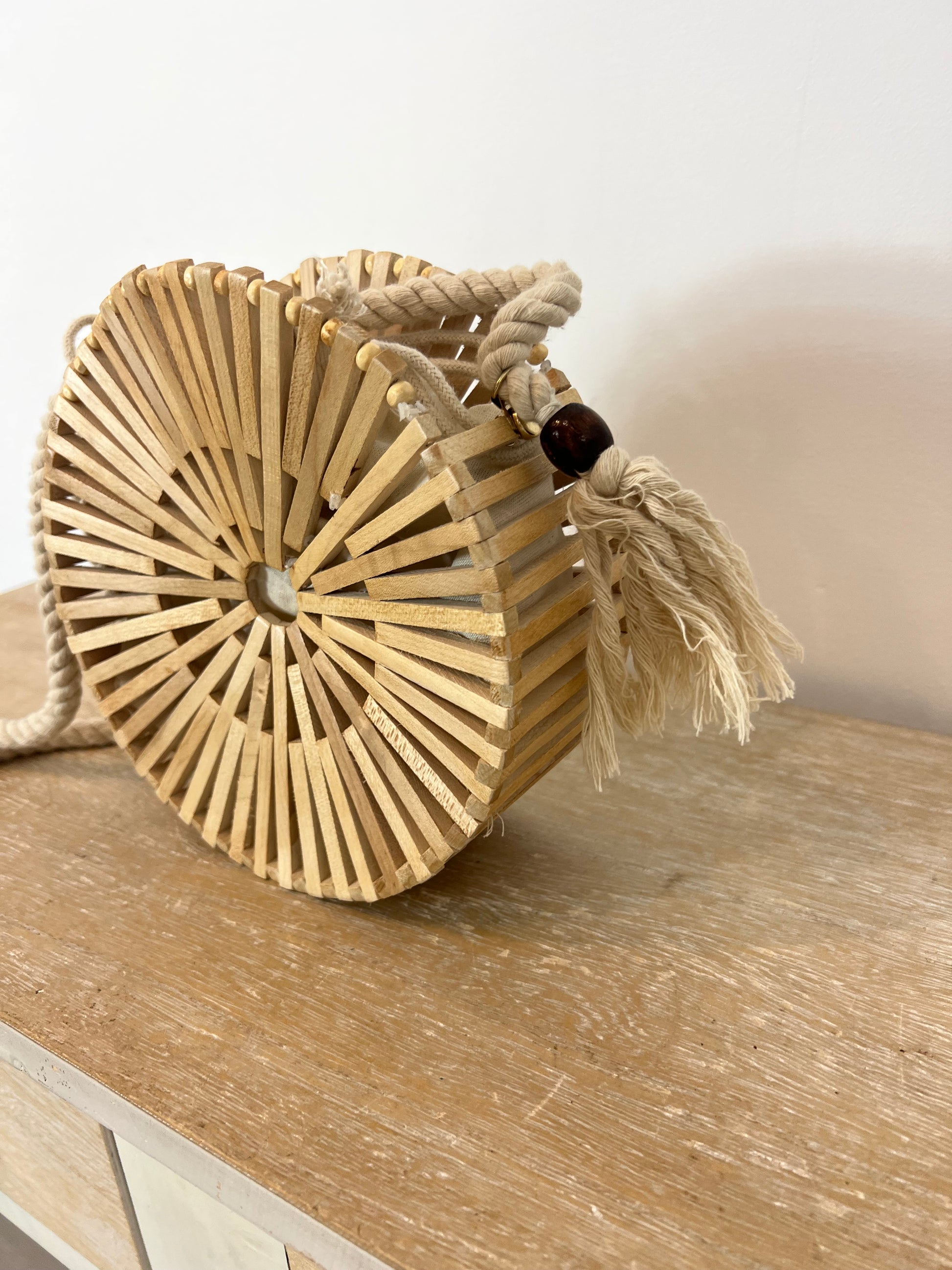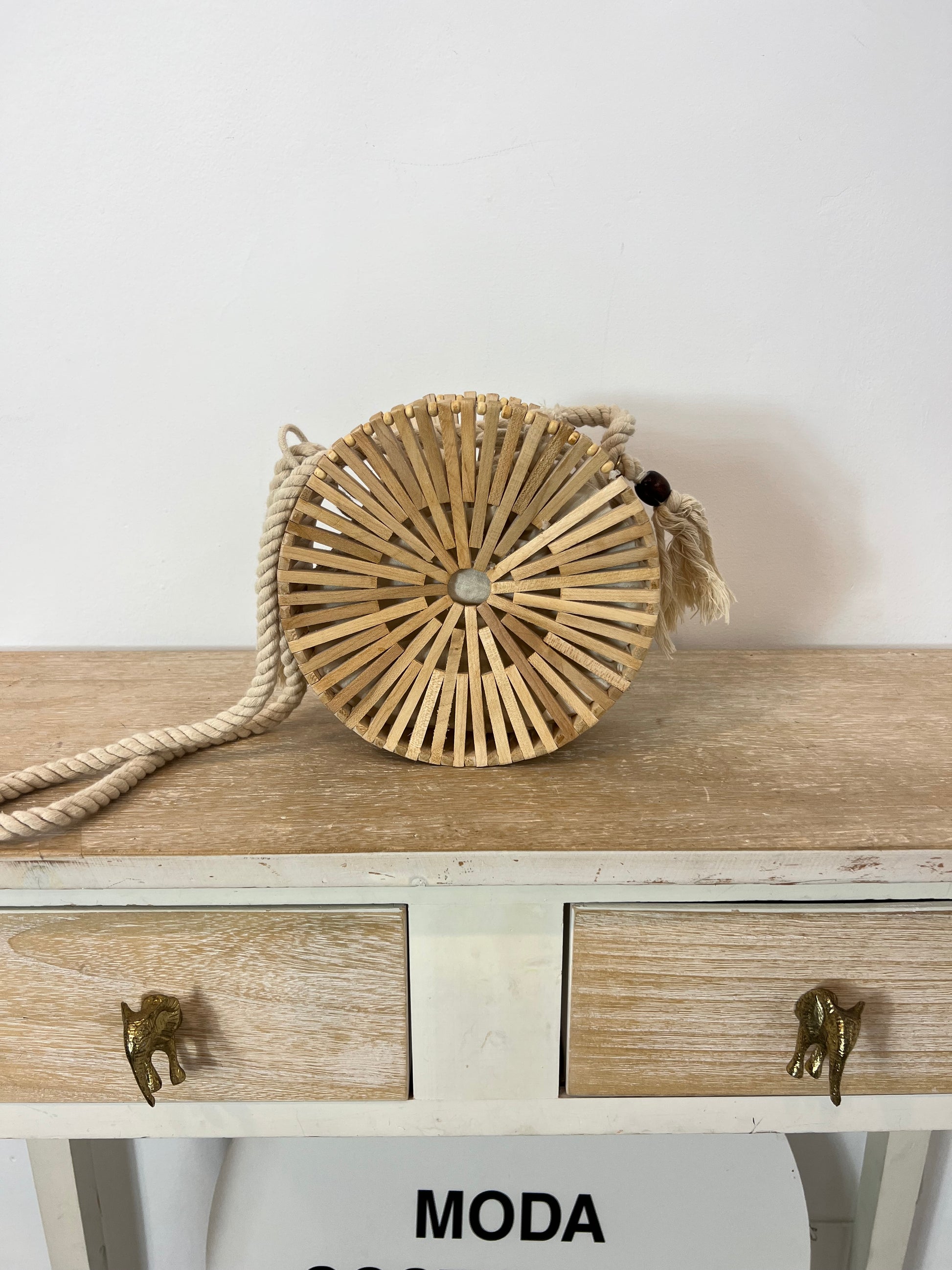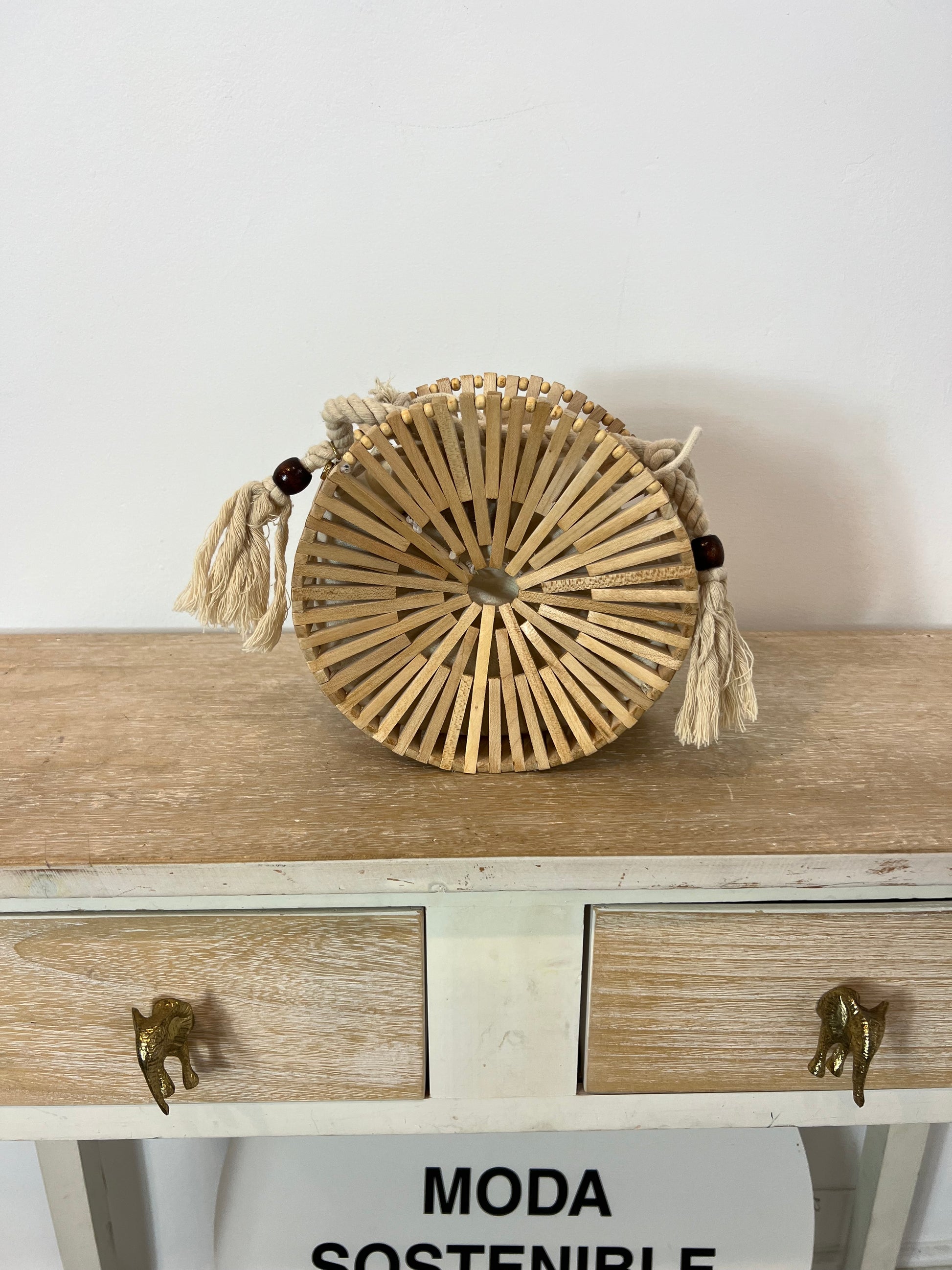 bolso redondo semi rígido beige