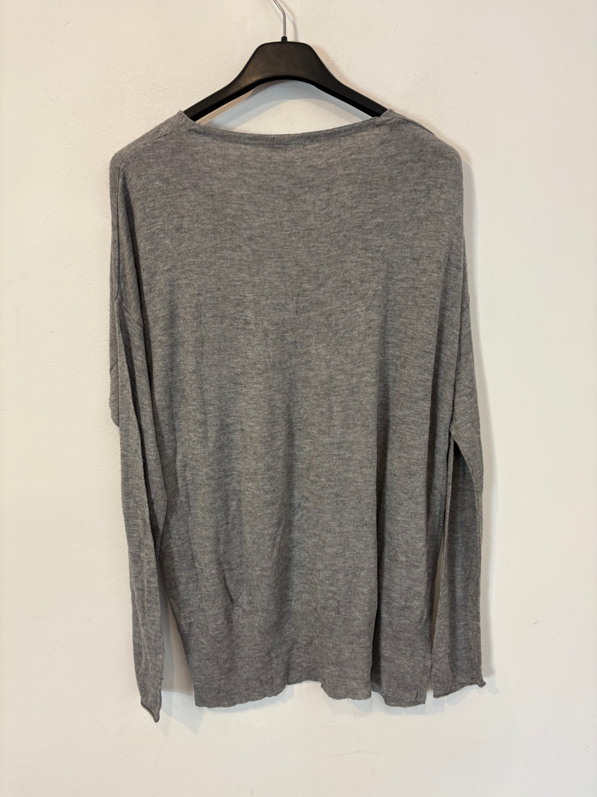 OYSHO. Jersey fino gris cuello pico