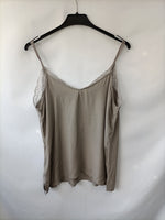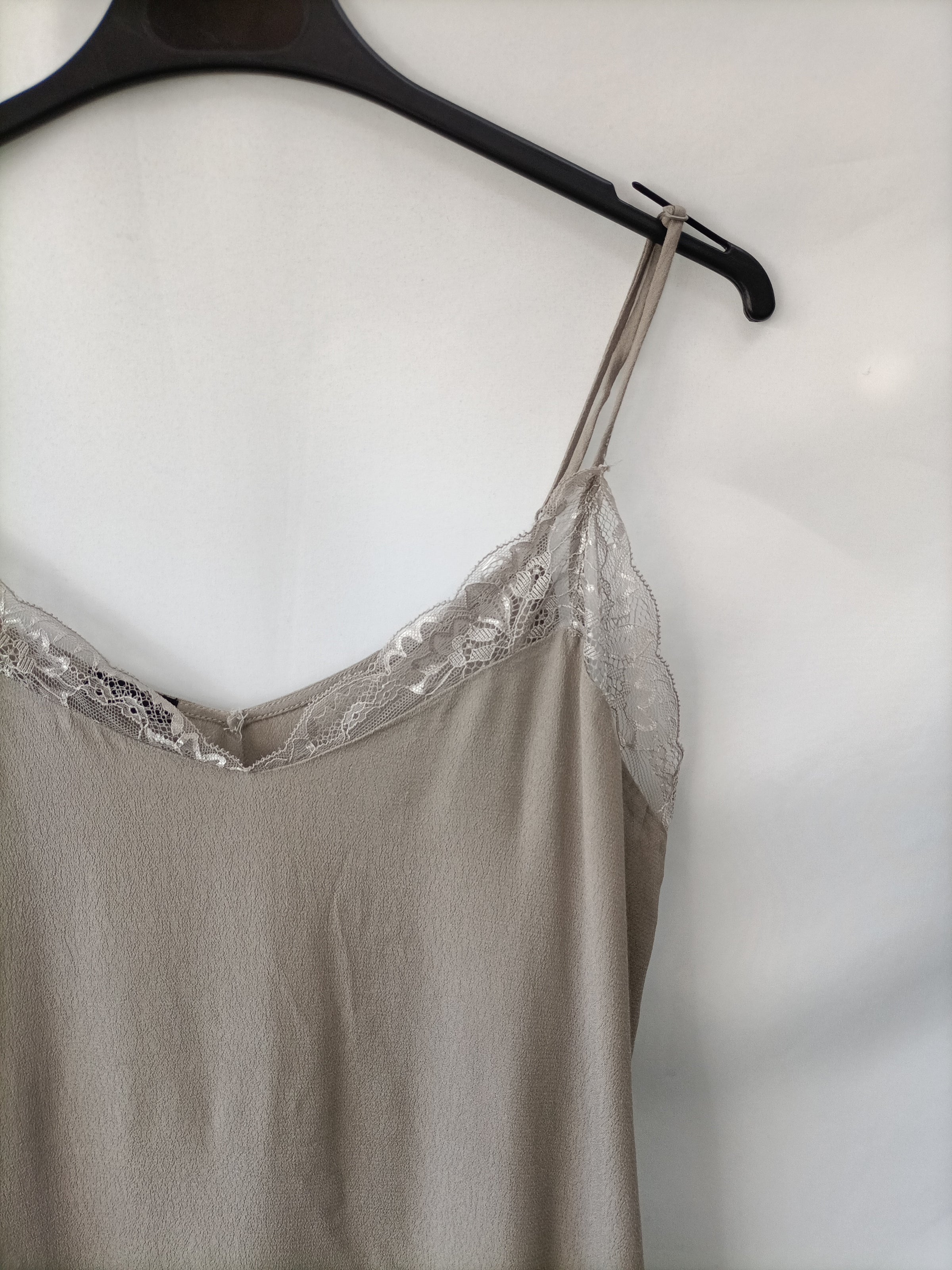 Top lencero en color verde grisaceo con encaje en el escote y tirantes ajustables.