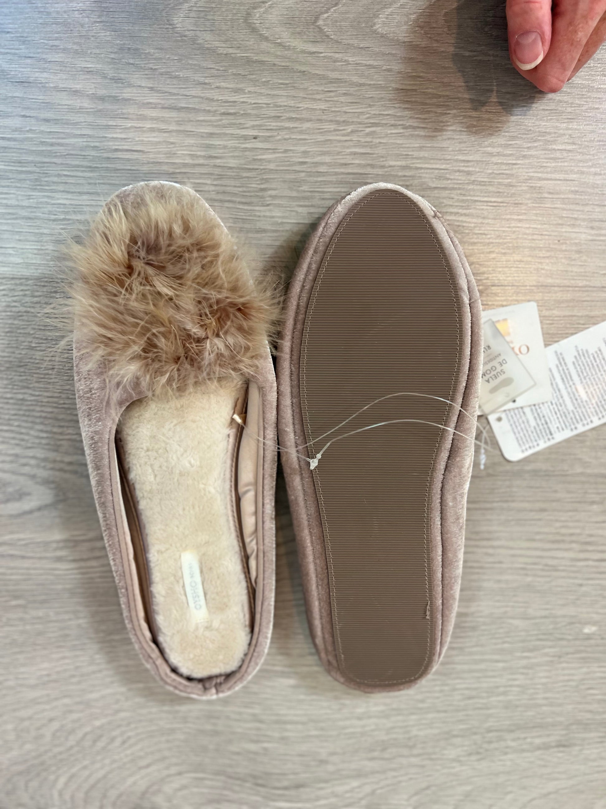 NUEVO CON ETIQUETA. zapatillas de estar por casa beige con pelito y pompon.