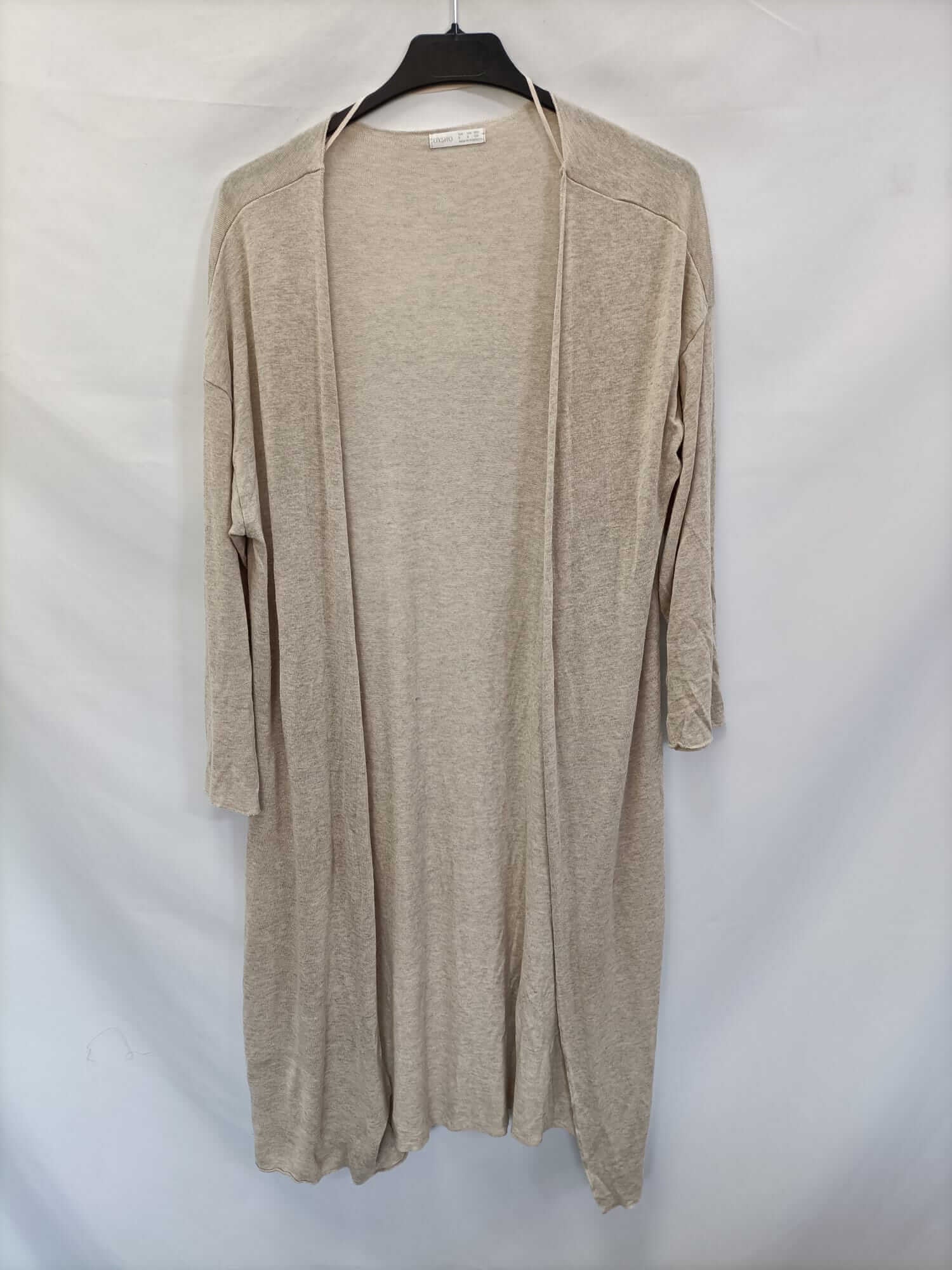 Oysho. S. Cárdigan muy finito beige jaspeado. Largo y elástico. Largo 102 cm
