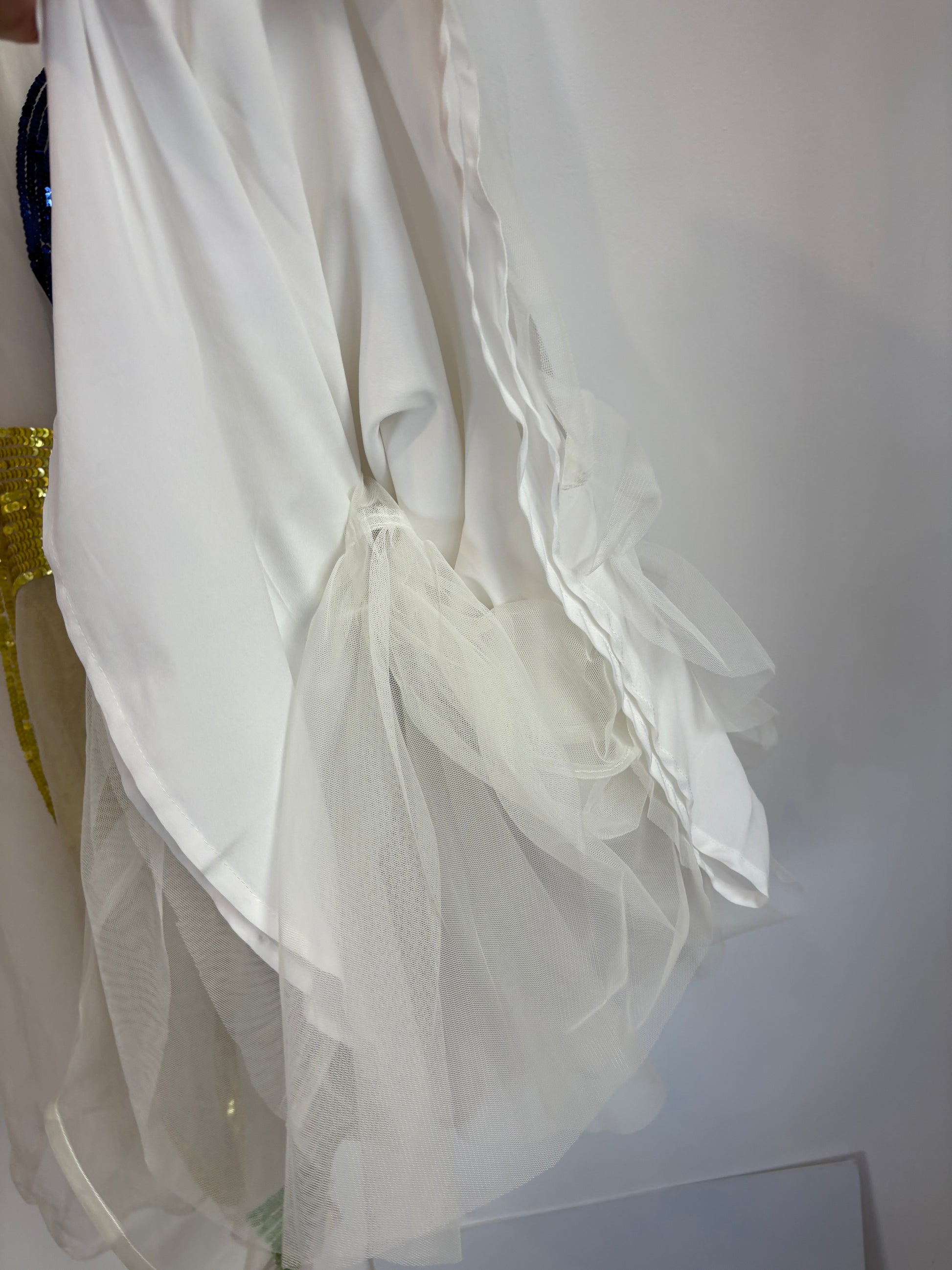Cintura 33 cm elástica, largo 90 cm/ tiene alguna marca muy poco visible en la cintura (foto)