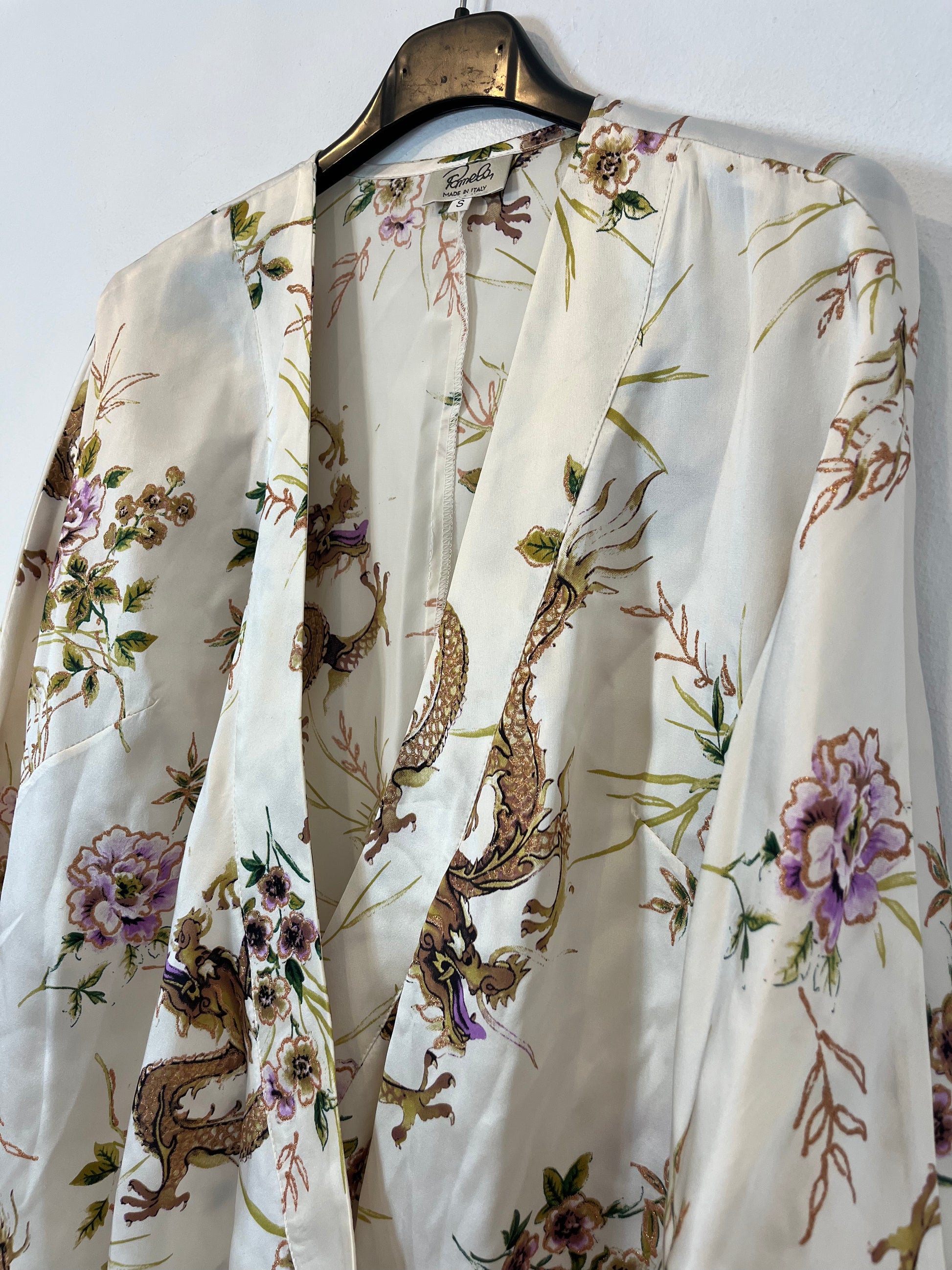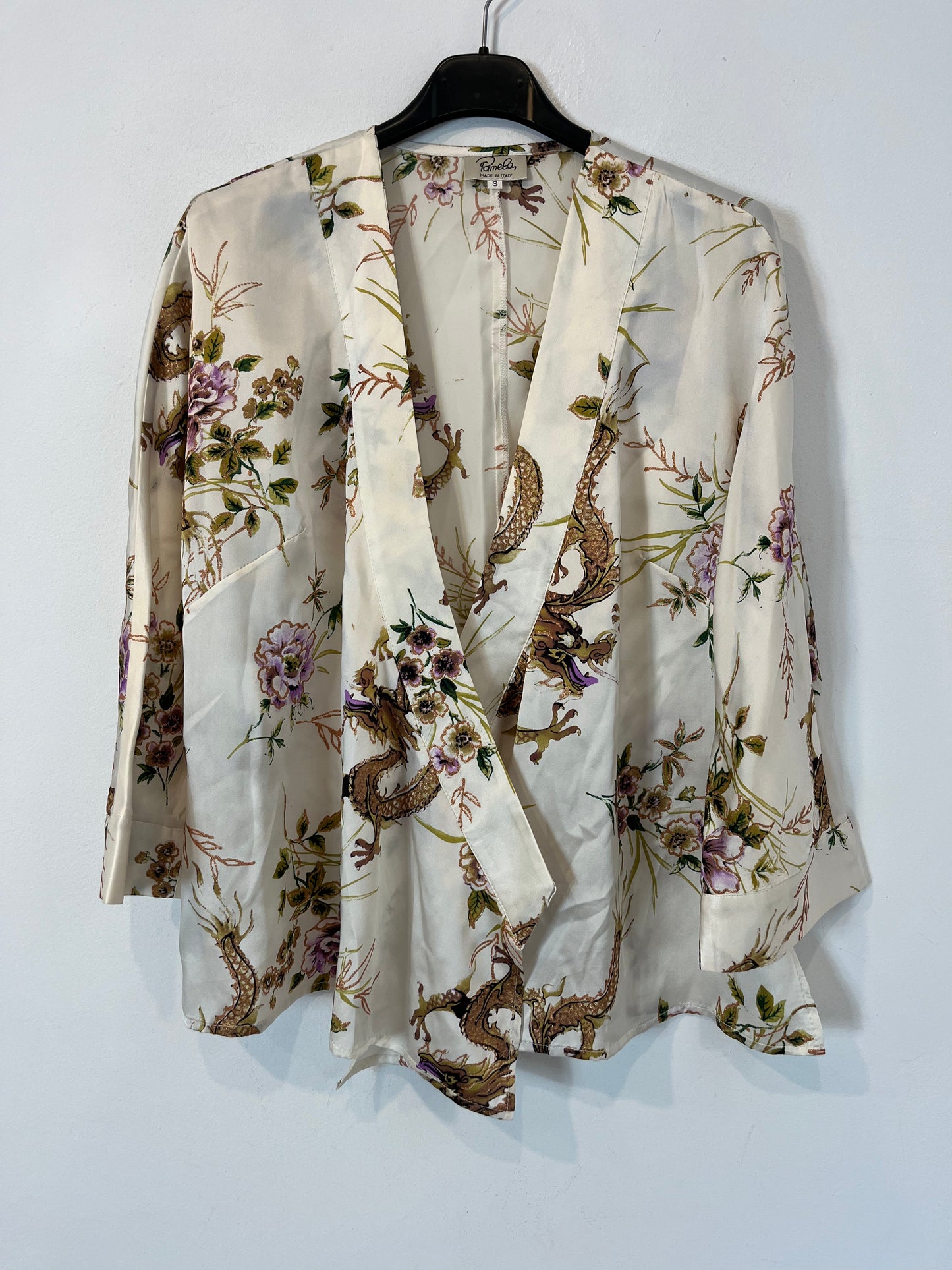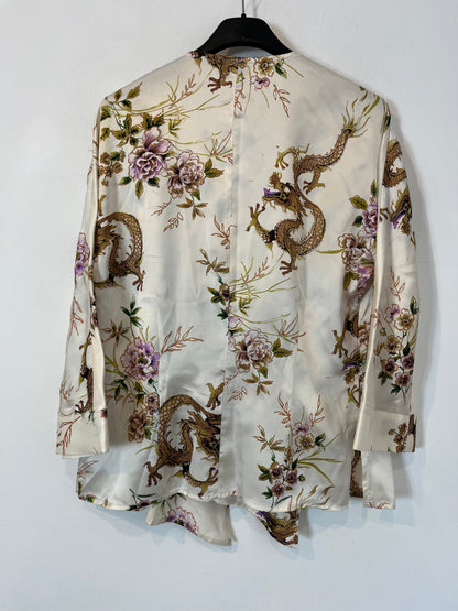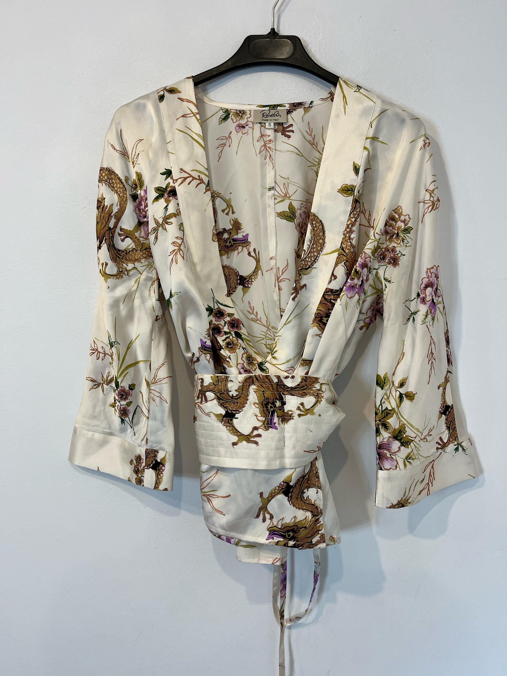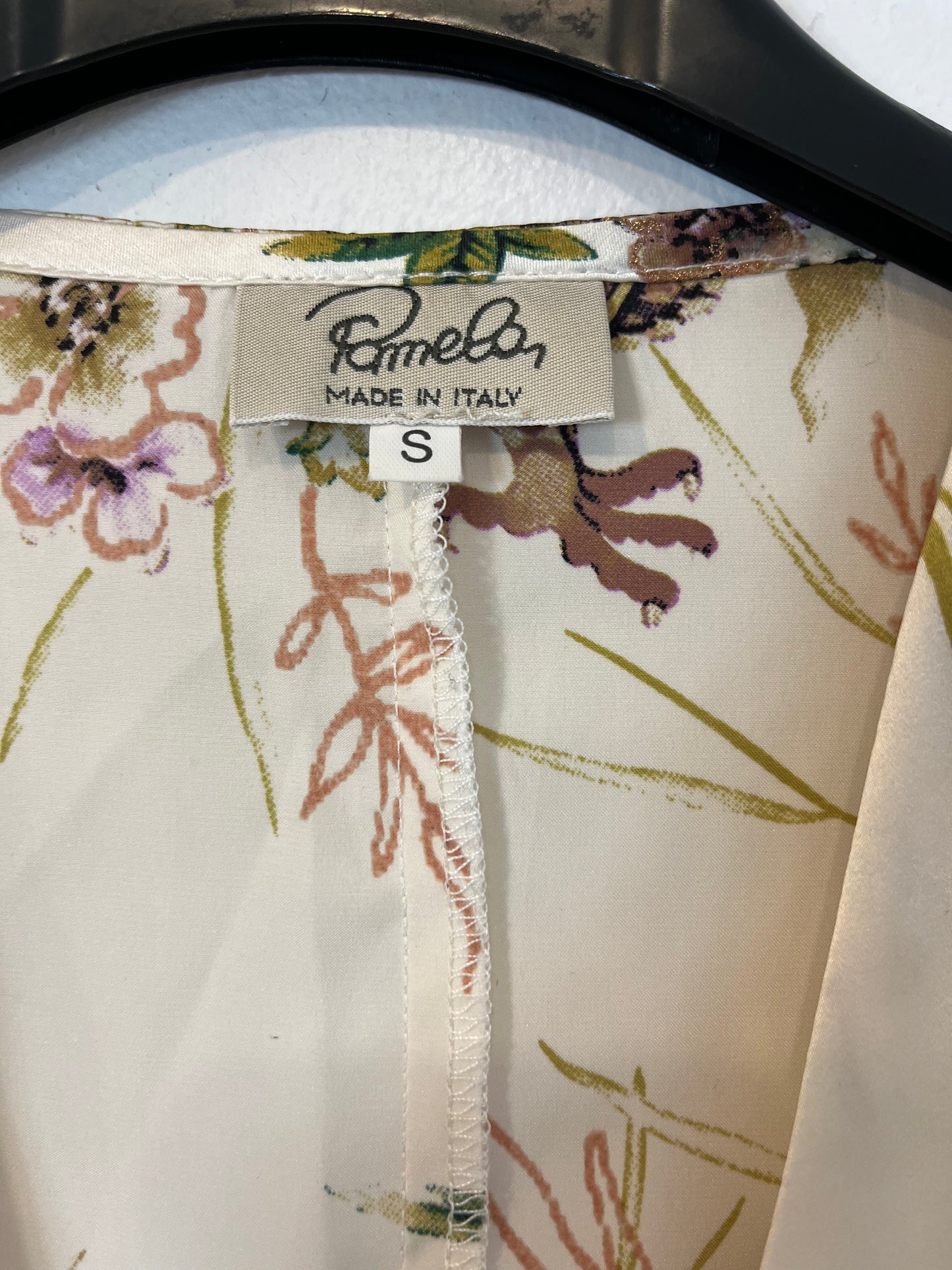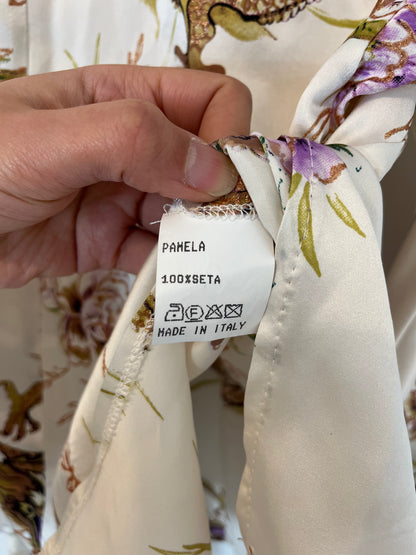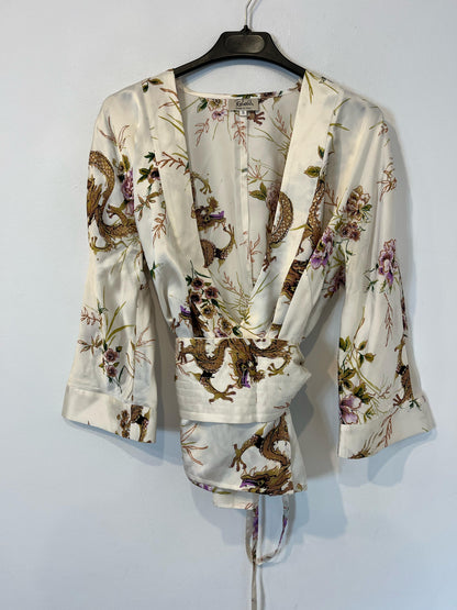 PAMELA MILANO. Blusa seda estampada cruzada. T S