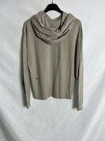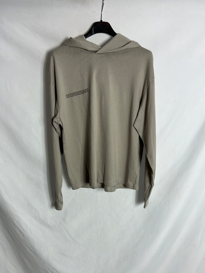 Sudadera fina beige letras con capucha. Tejido semi elástico