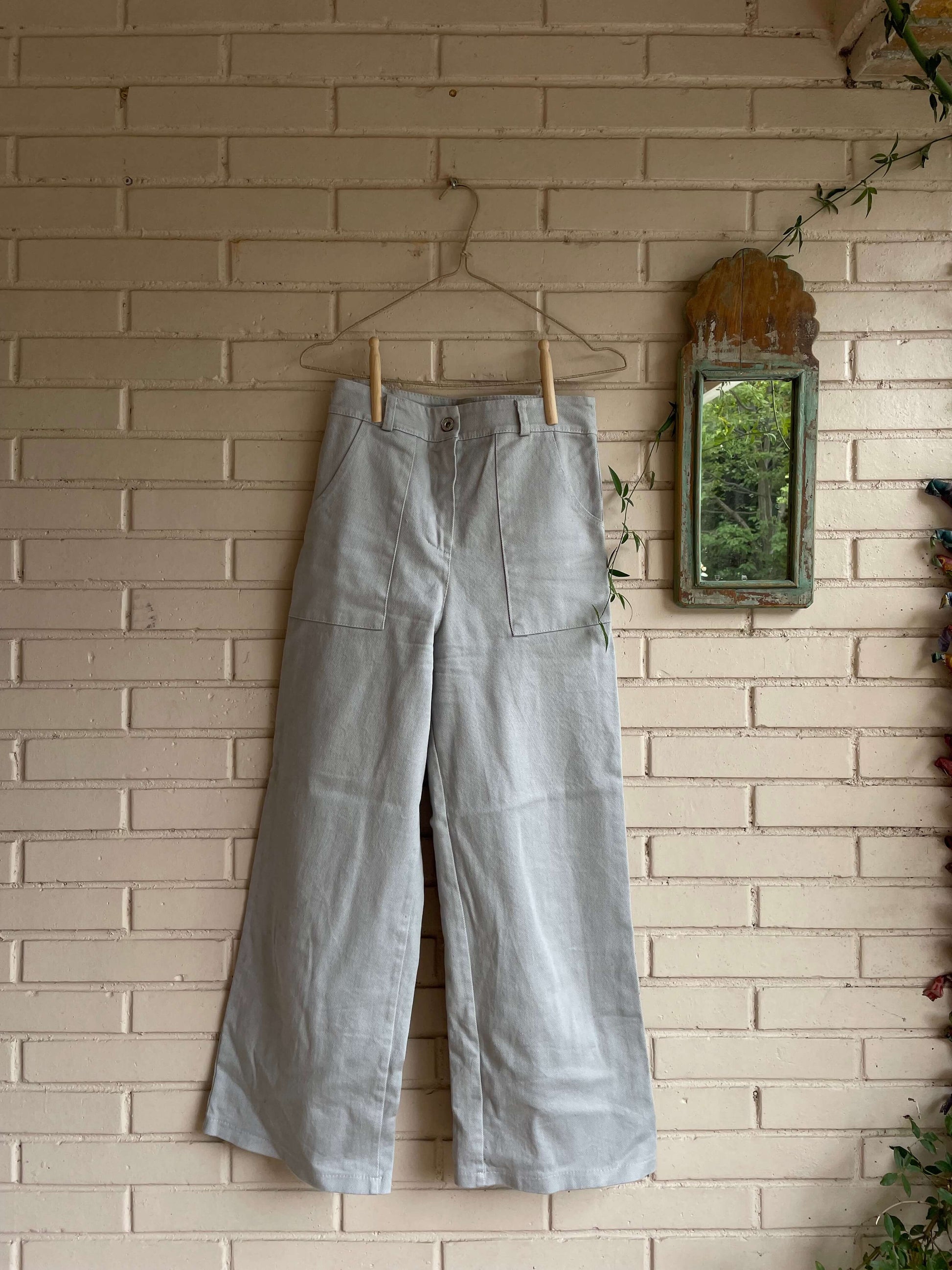 Pantalón tejido denim estilo culotte semielastico. Cintura 36 cm largo 94 cm