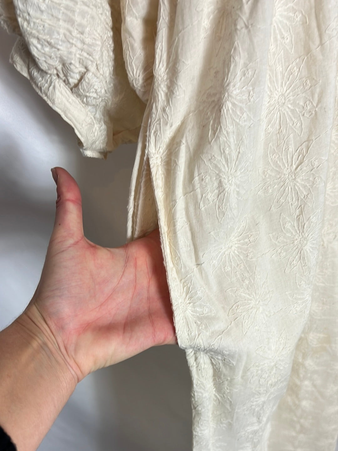 Vestido algodón color crudo bordados. largo 120cm