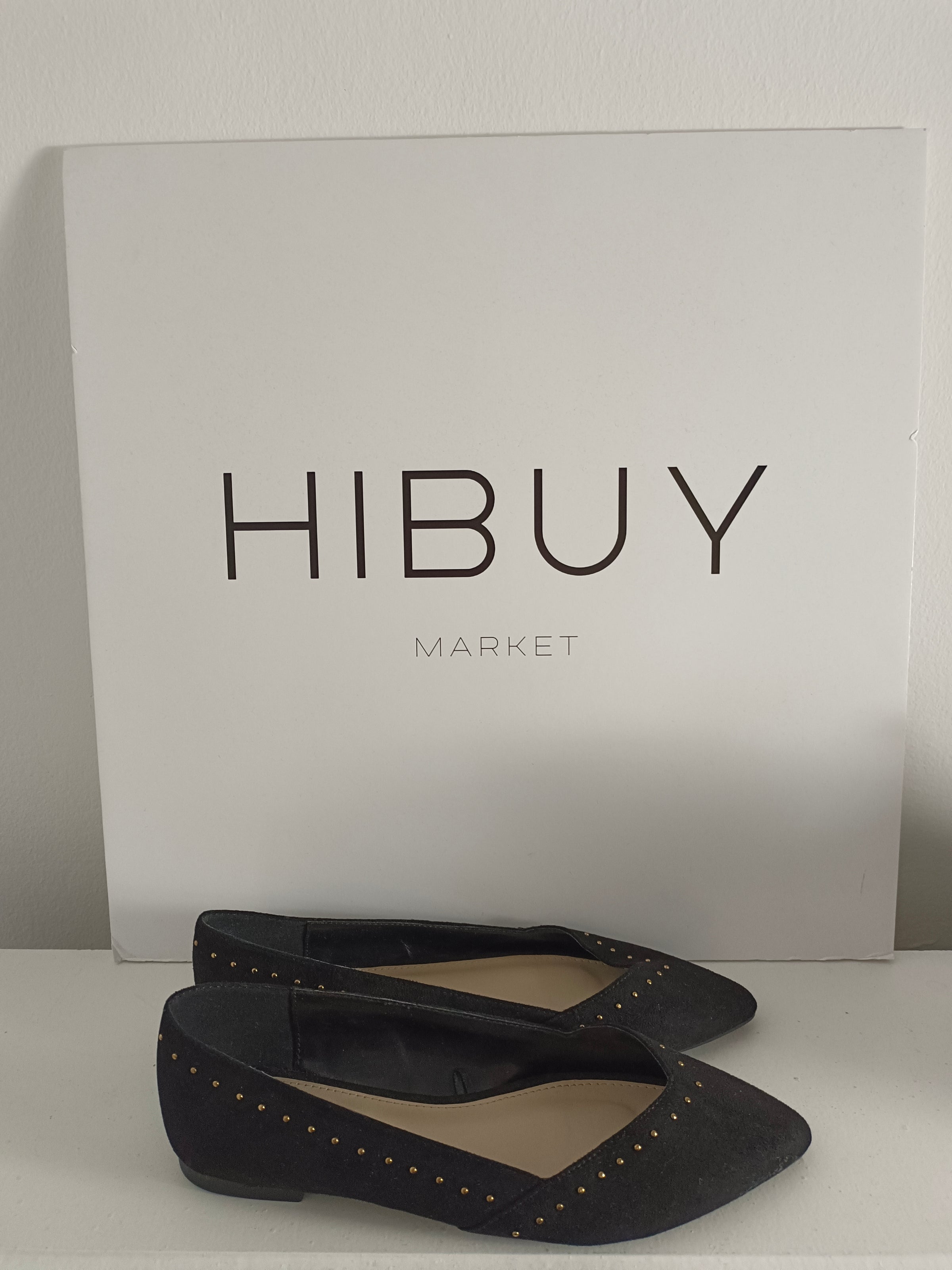 Bailarinas negras antelina con tachuelas doradas.