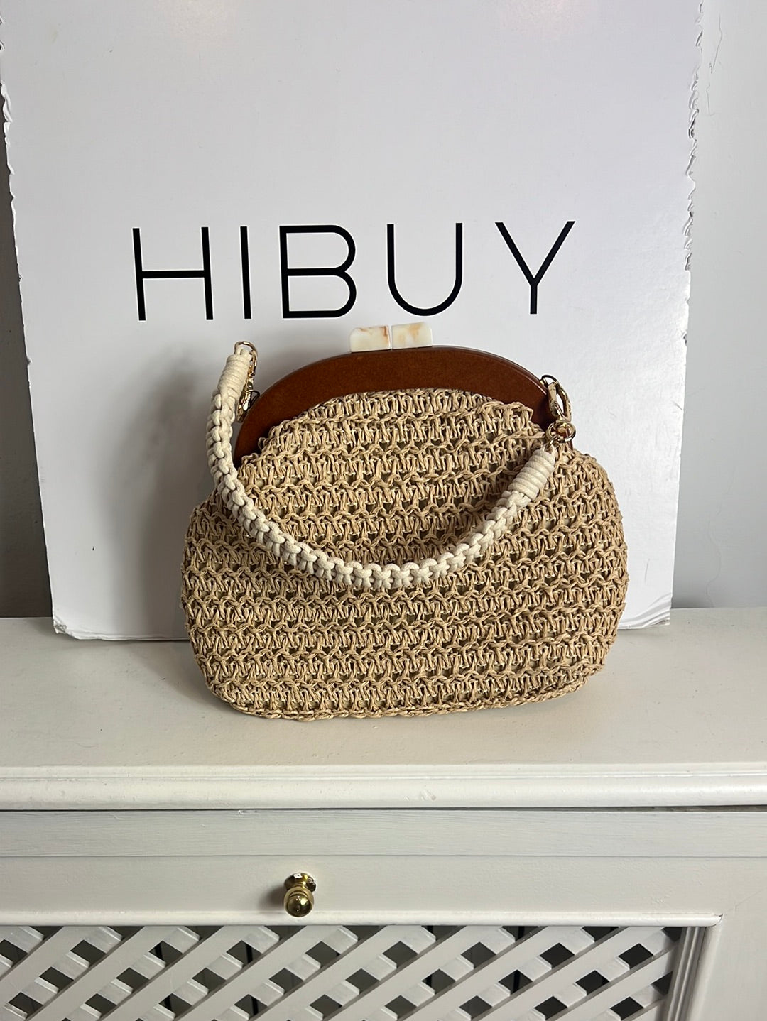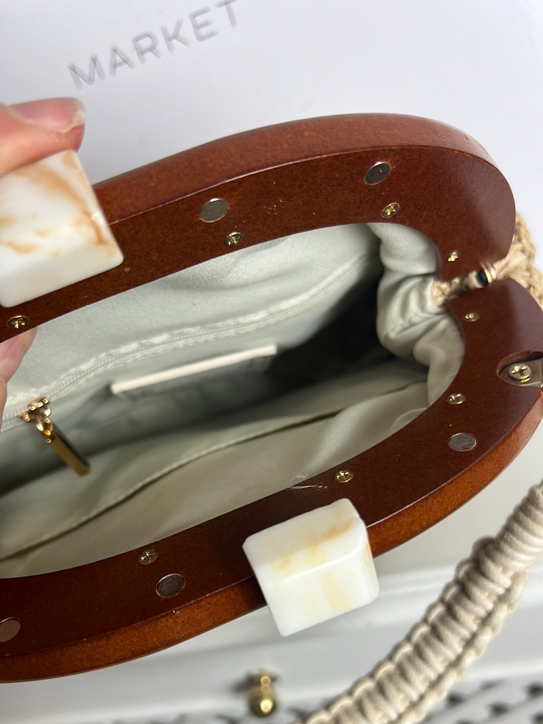 bolso radia detalles de madera y asa media