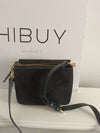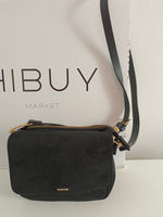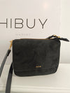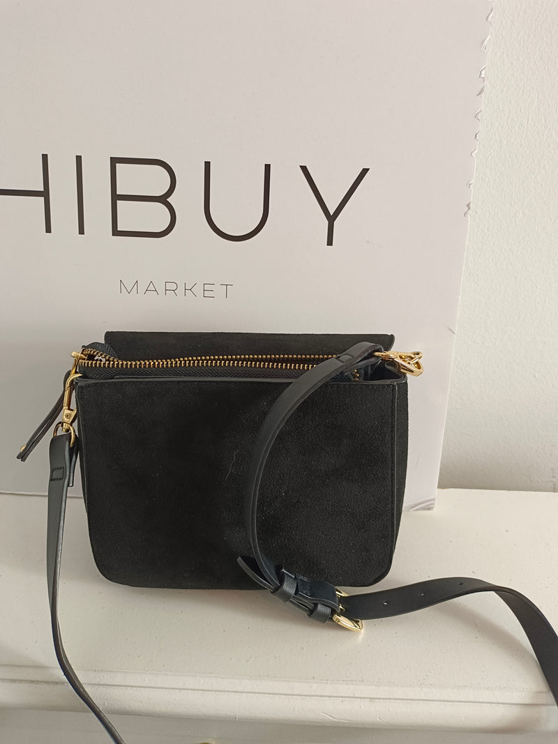 bolso negro de antelina estilo bandolera con asa larga extraíble