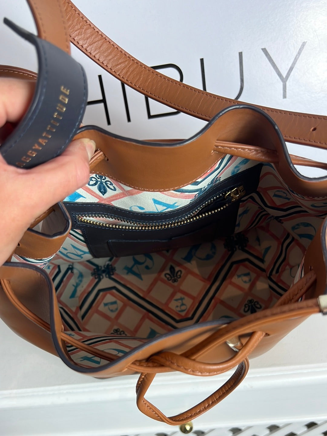 NUEVO SIN USO. Bolso piel camel Tara: marca en la parte trasera. Tamaño mediano, alto 28 cm