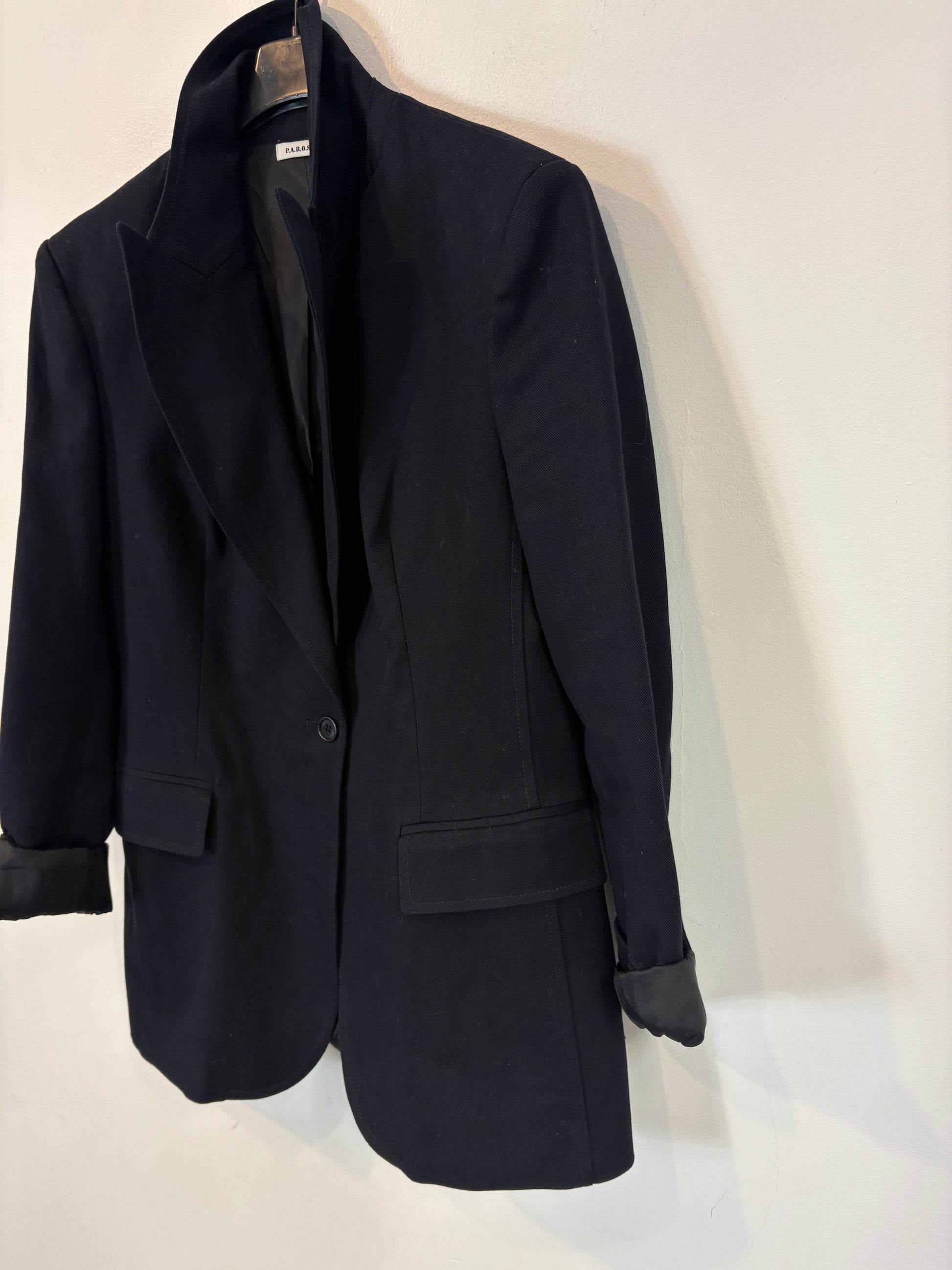 Hombros 41, De sisa a sisa 43 cm largo 70 cm. Tara: marac cuello poco visible (foto)/ azul oscuro casi negro