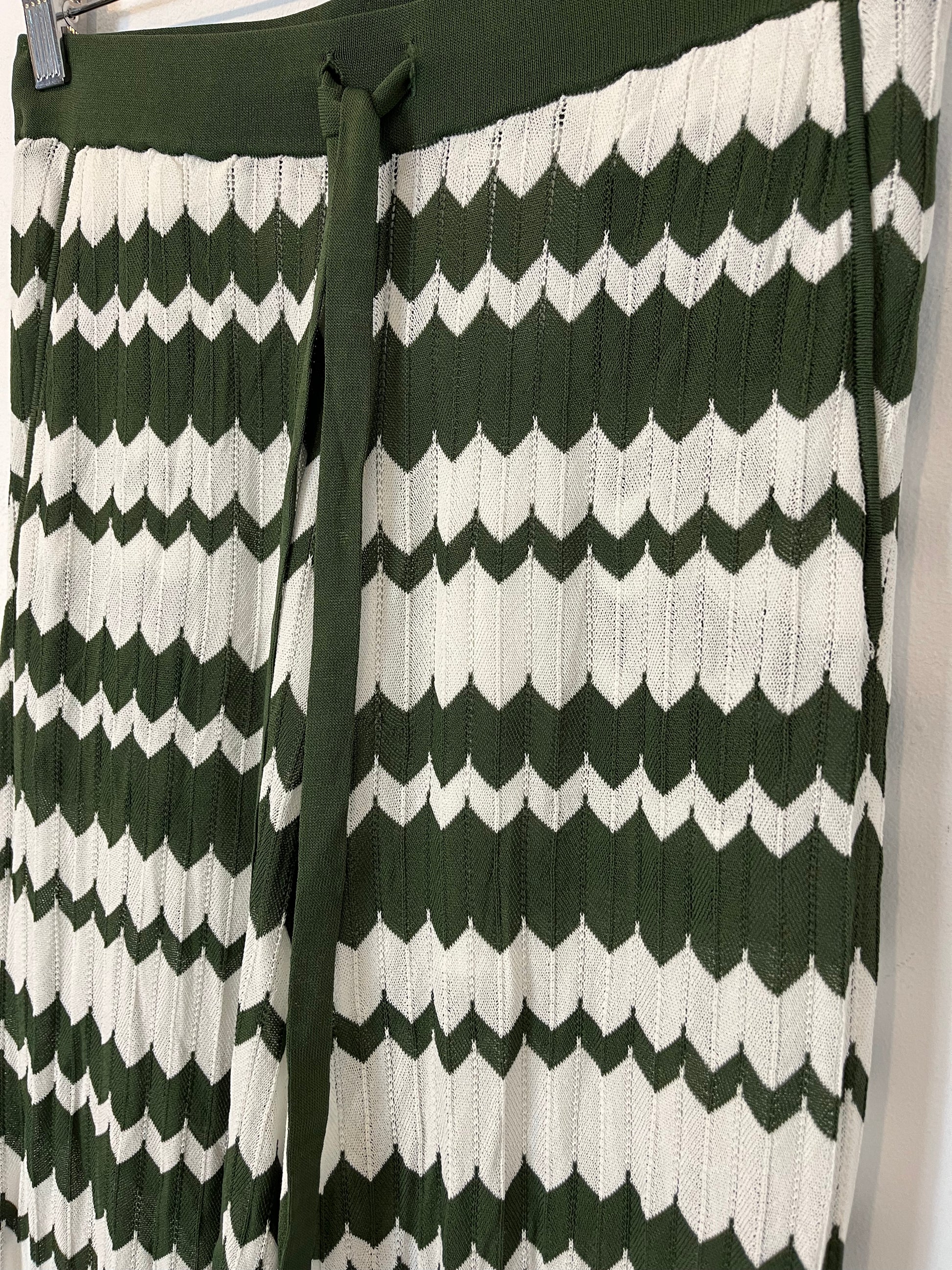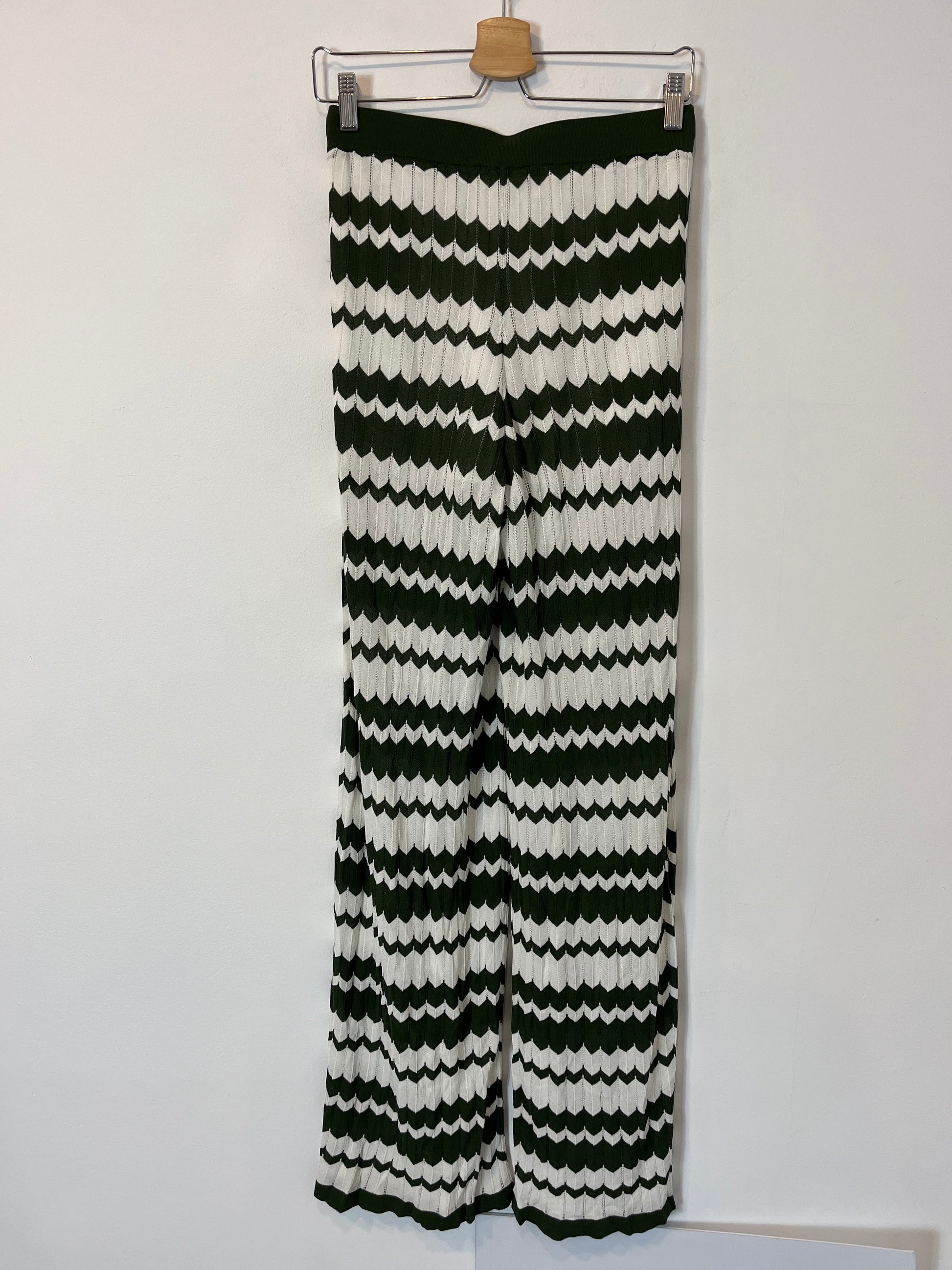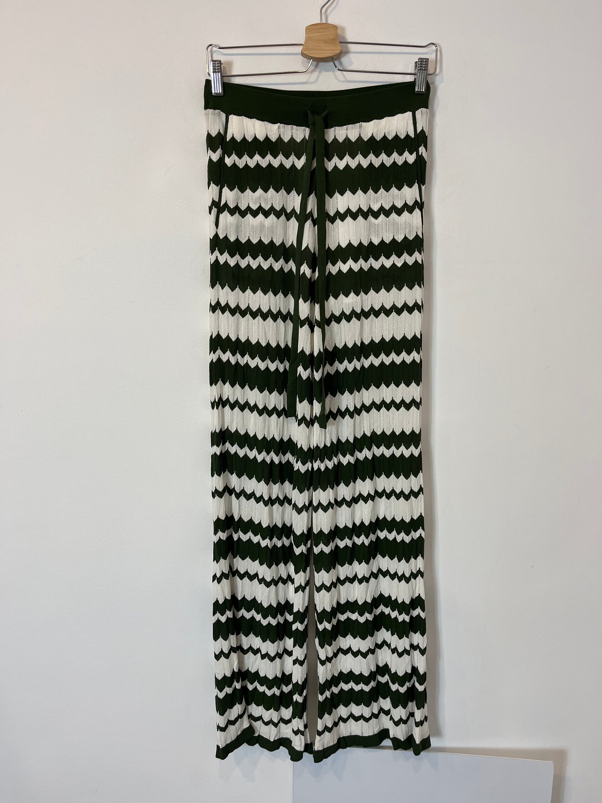 Pantalón de punto de rayas verde y blanco elástico. Forró interior más corto. INFLUENCER: @eugenia_osborne
