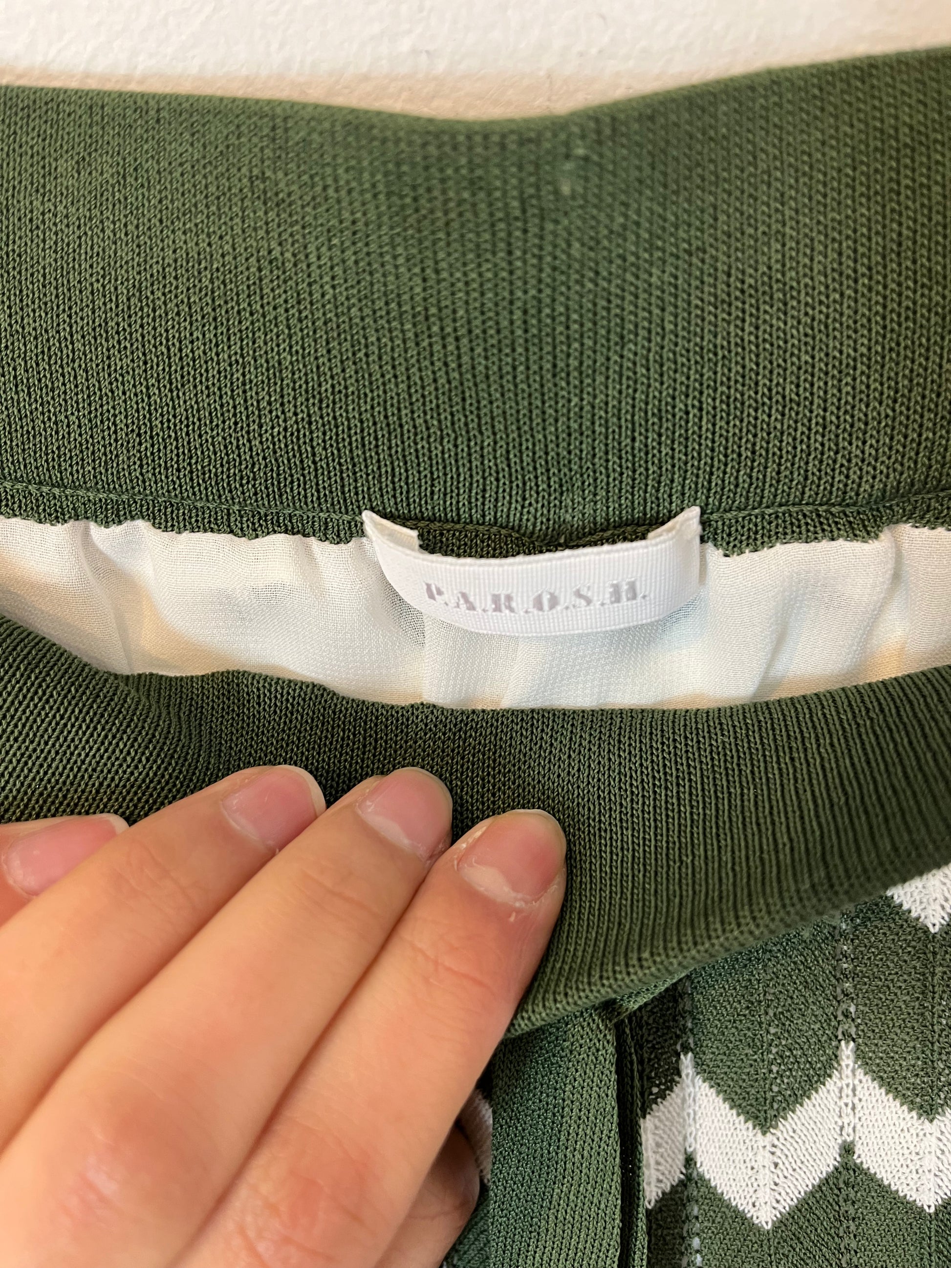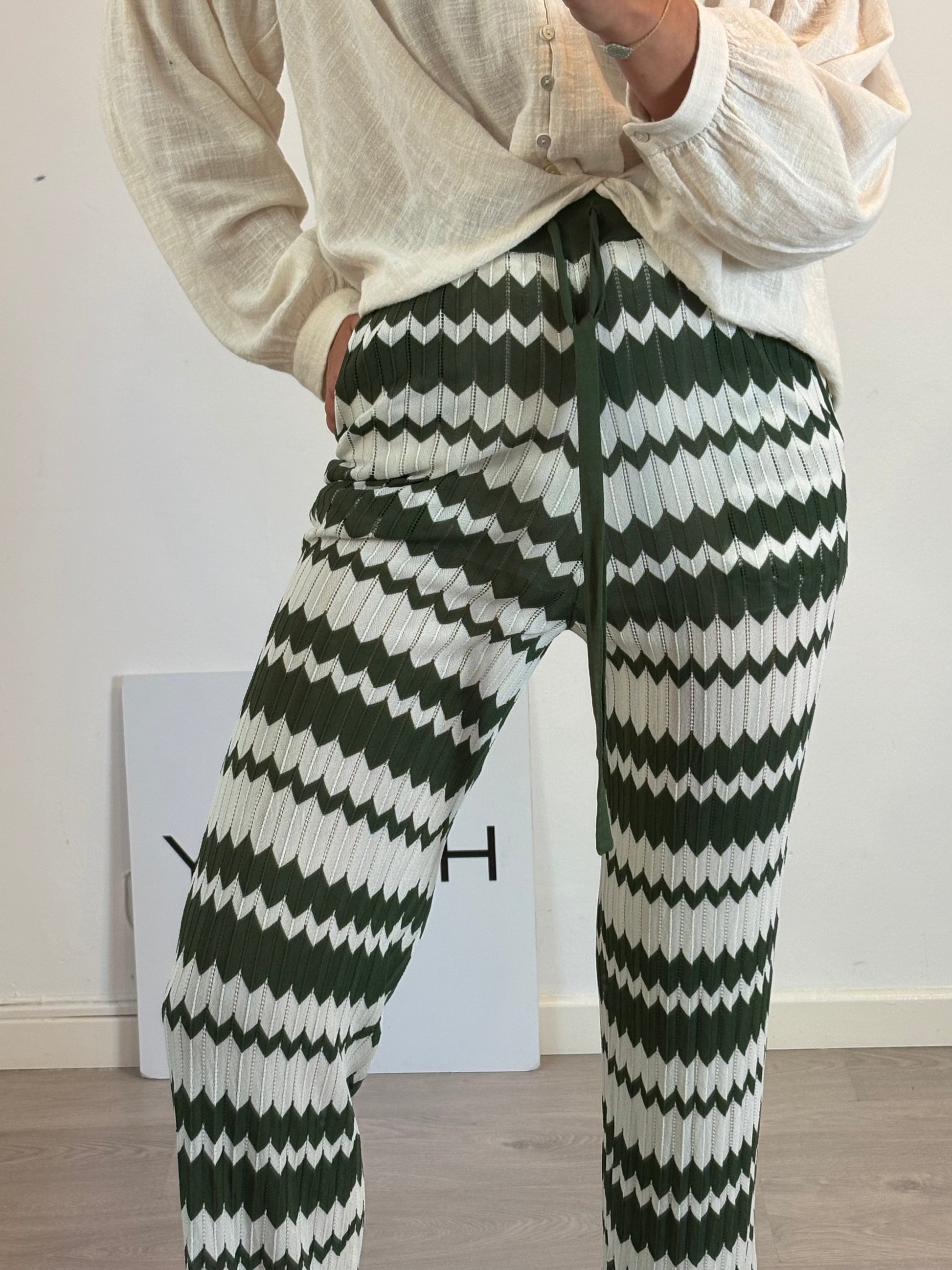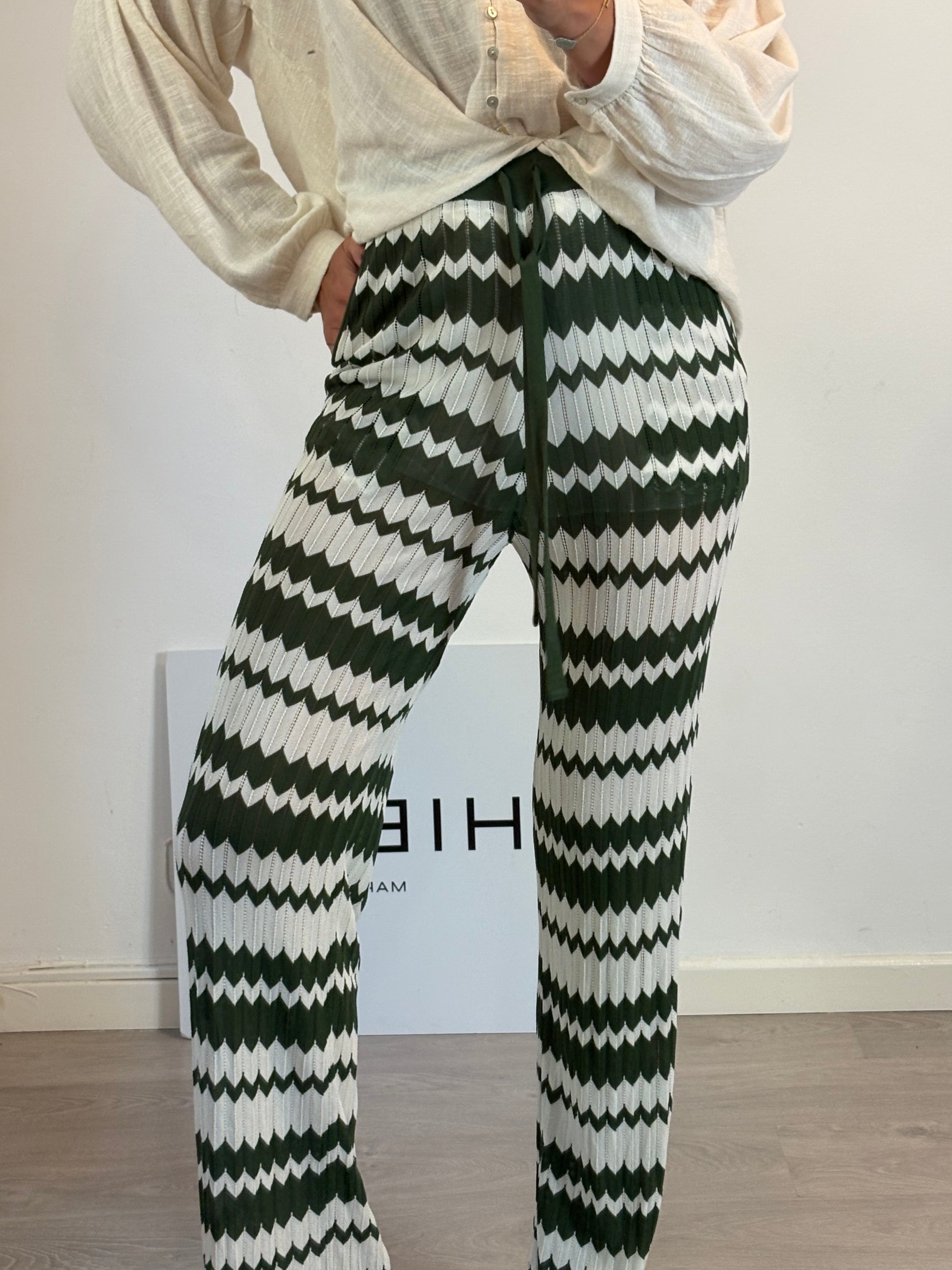 Pantalón de punto de rayas verde y blanco elástico. Forró interior más corto. INFLUENCER: @eugenia_osborne