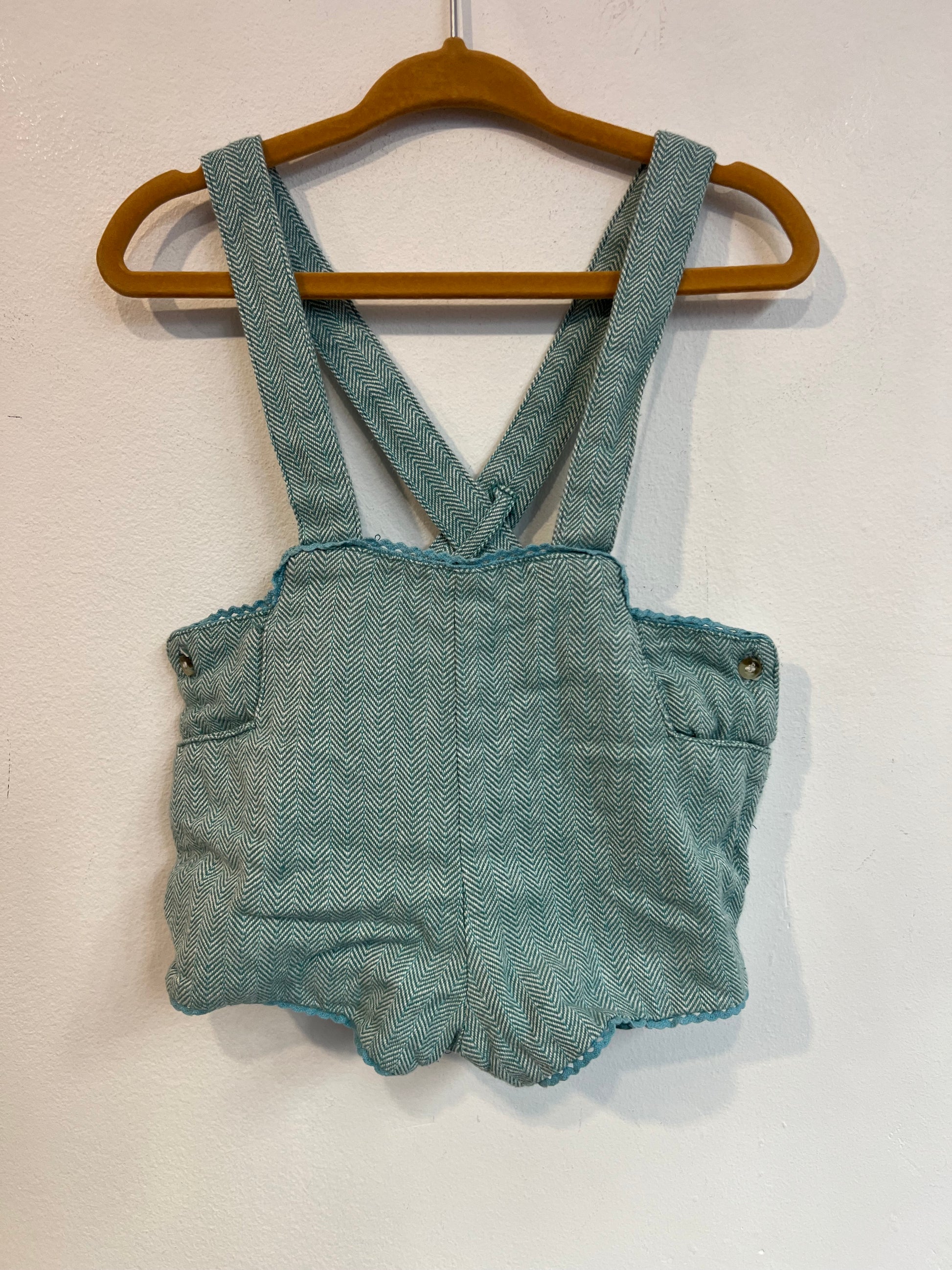 Ranita algodón azul claro jaspeado. Cintura semi elástica. Largo regulable