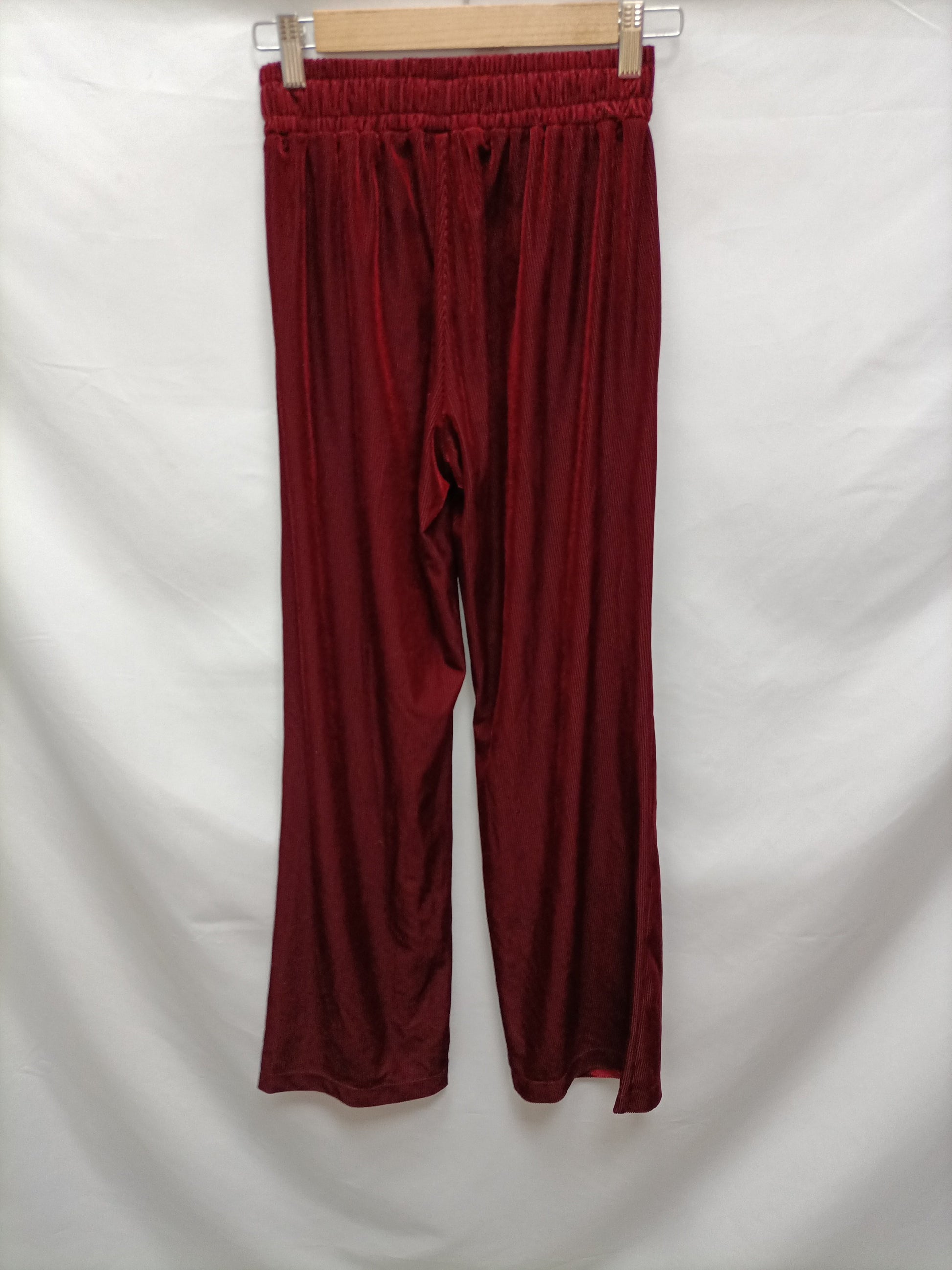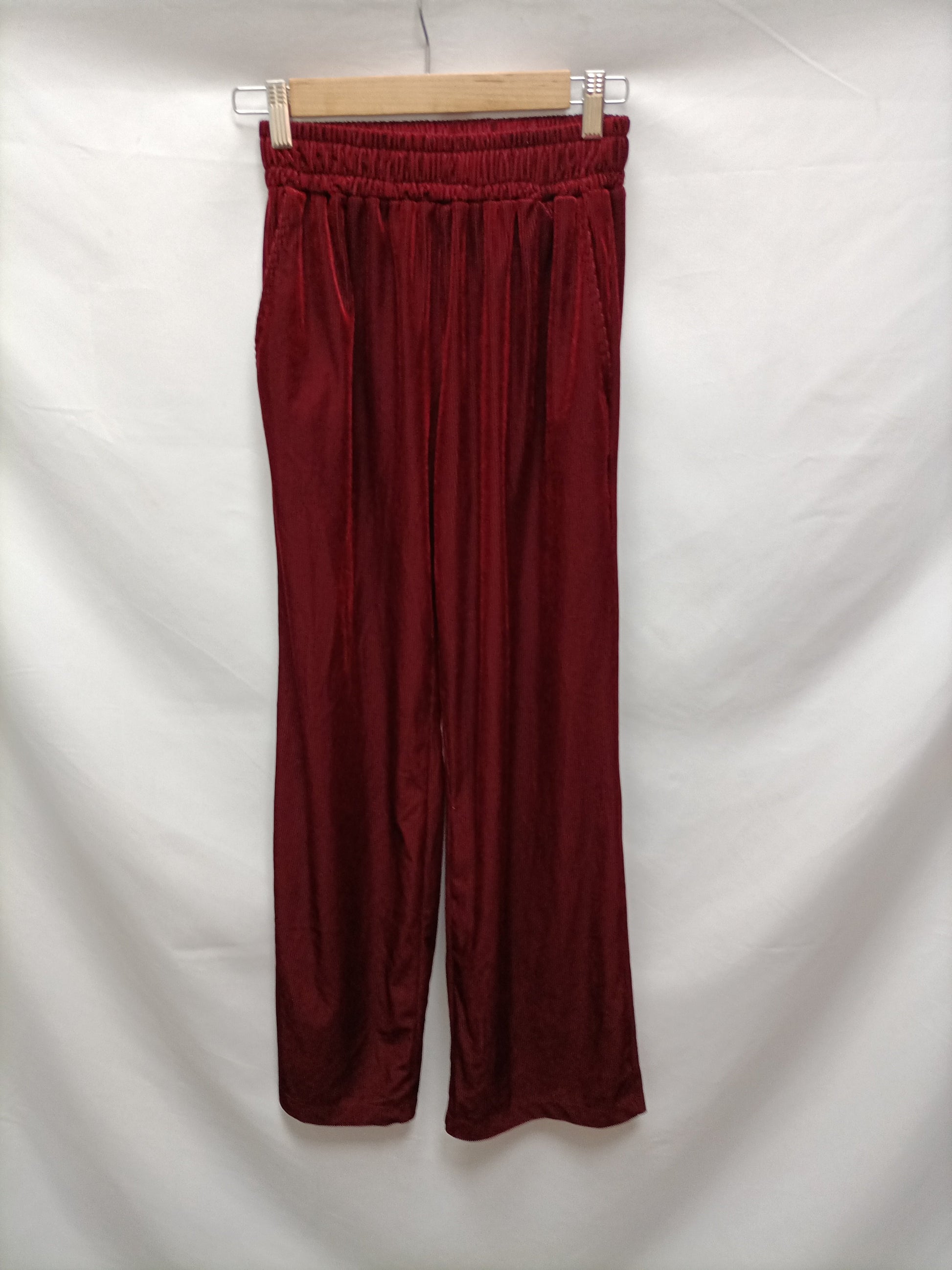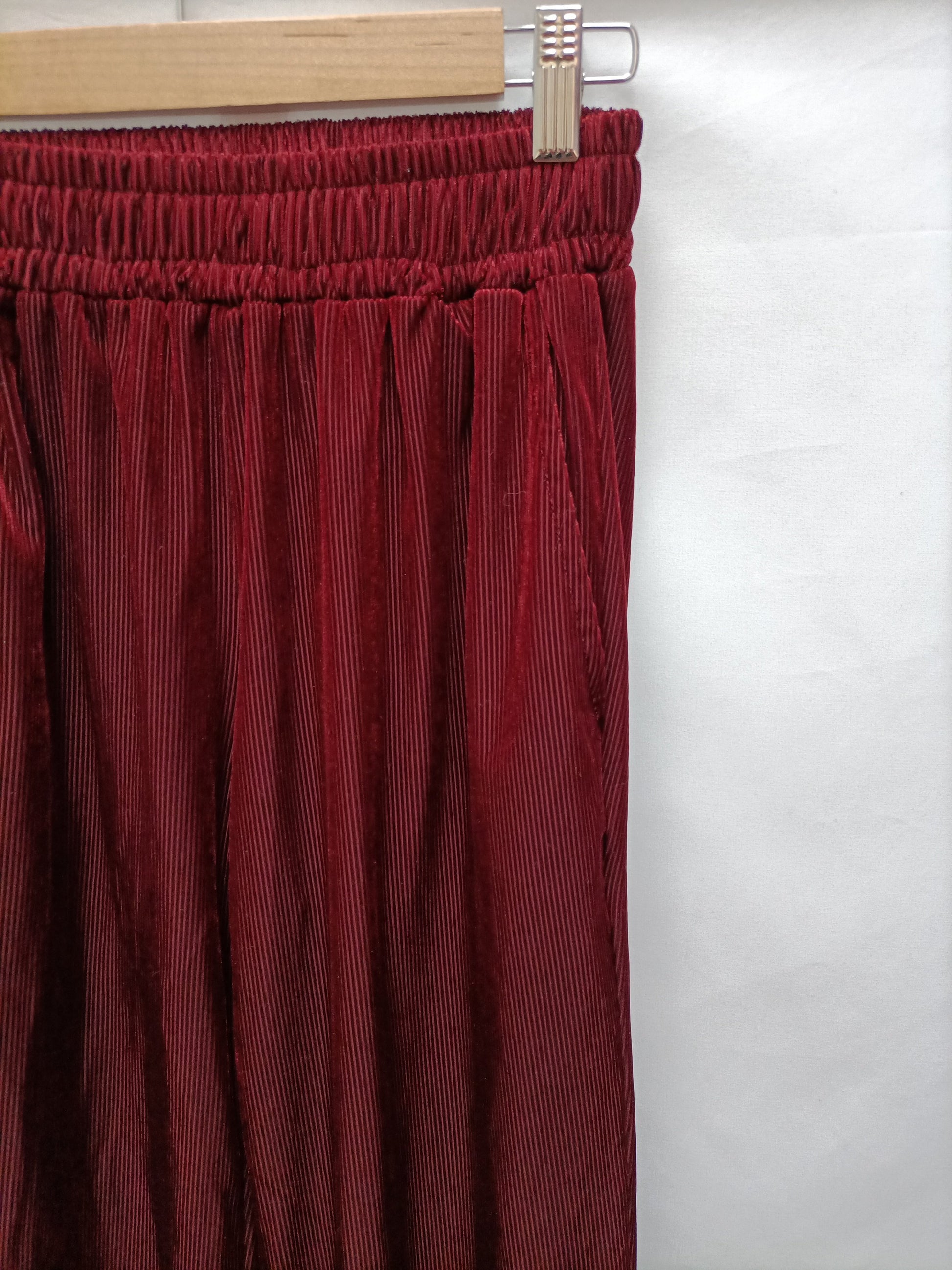 Pantalón fluido estilo Palazzo de terciopelo burdeos. Tejido estilo micropana. Cintura elástica. largo 99cm