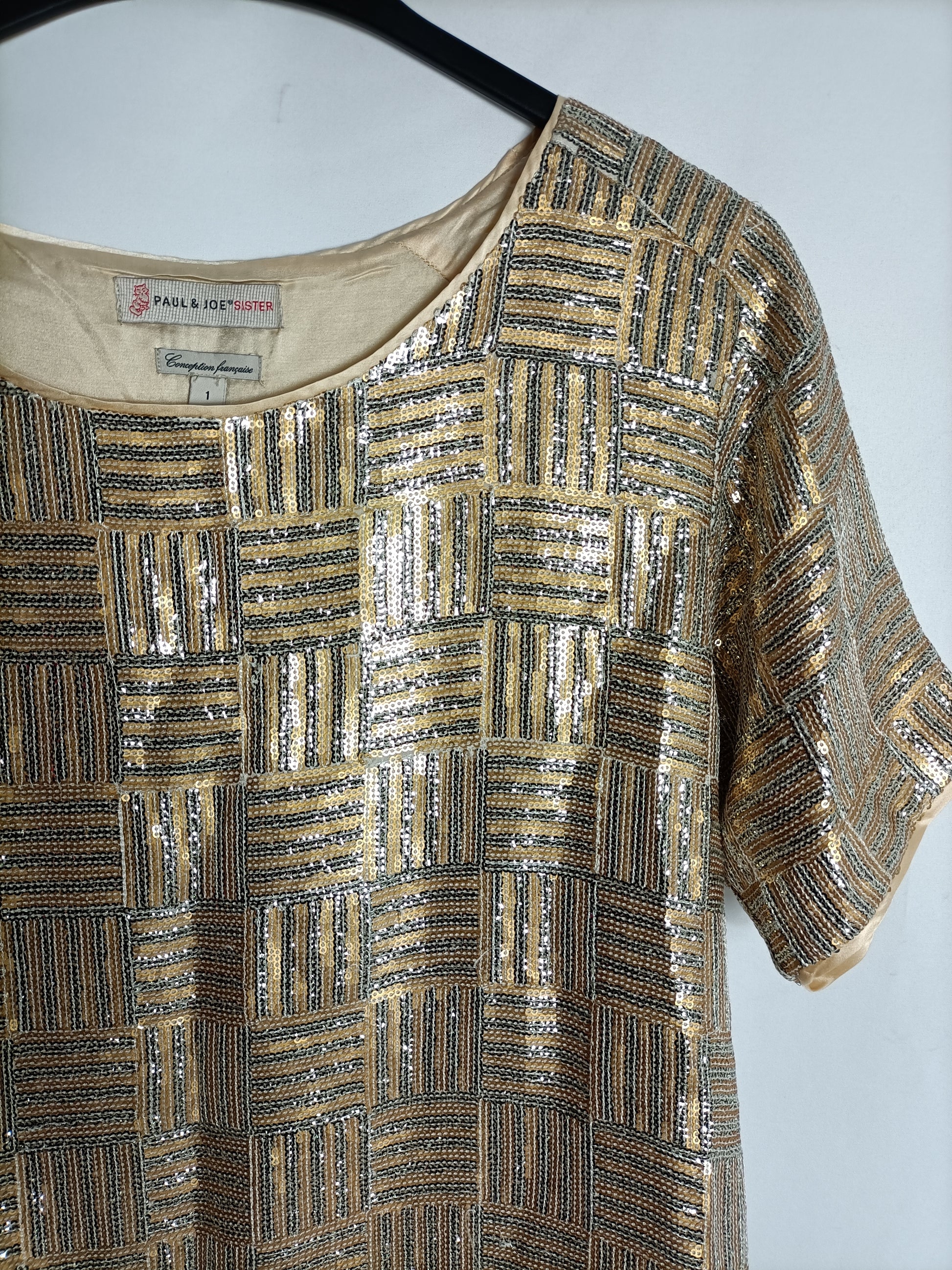 PAUL&JOE. Blusa dorada lentejuelas T.1(s)