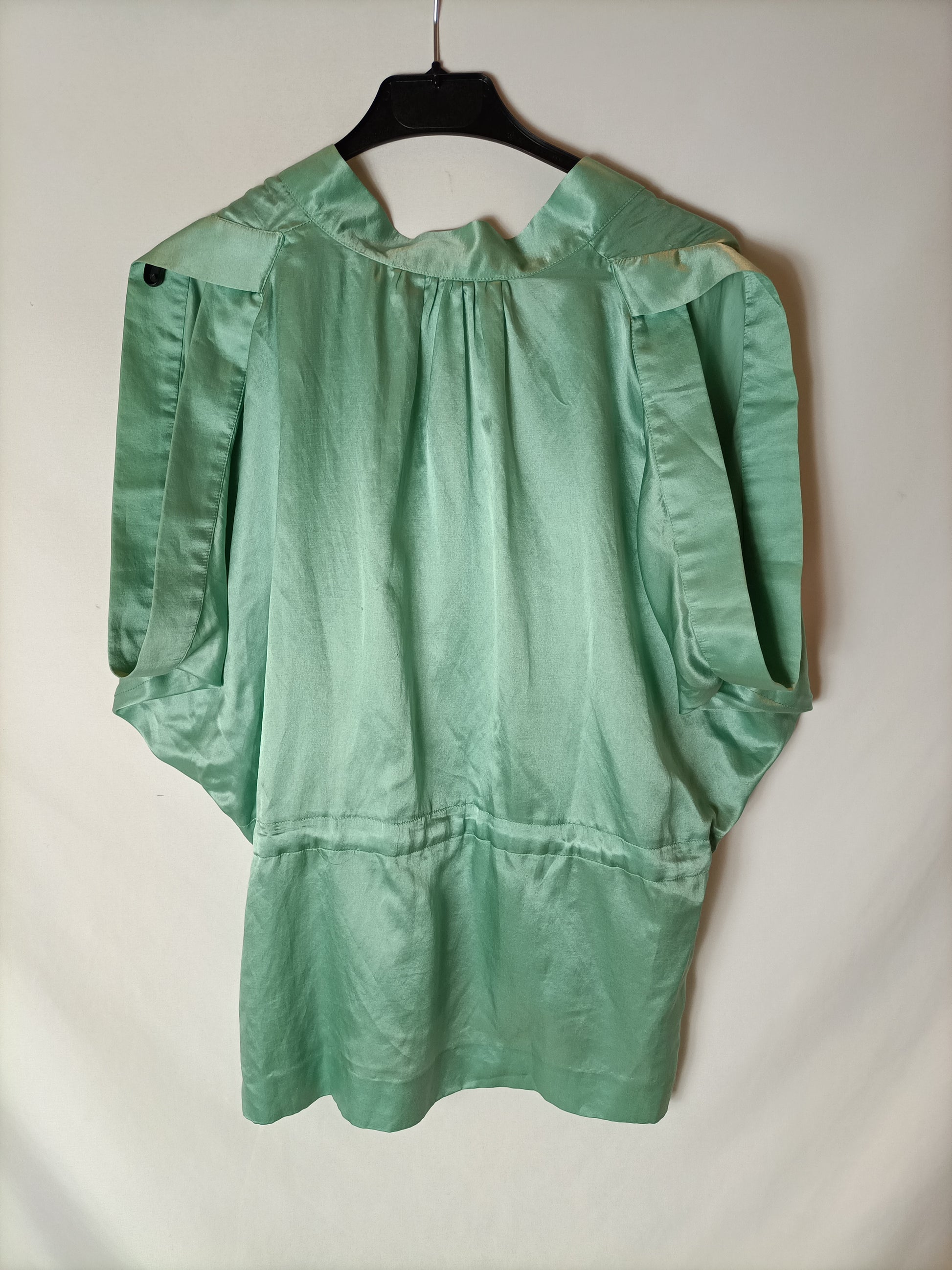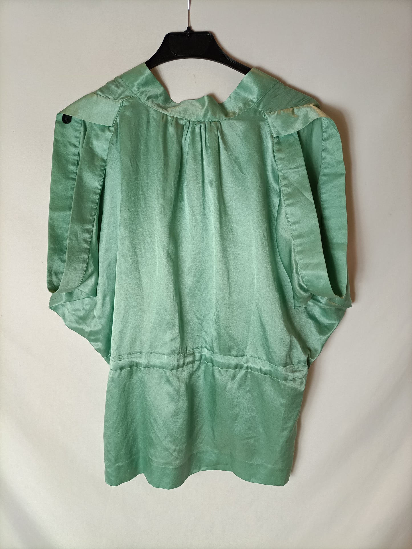 55% seda, 45% algodón. Blusa manga corta aguamarina