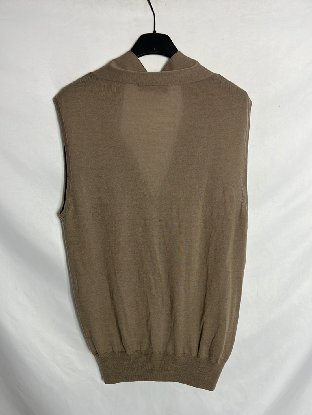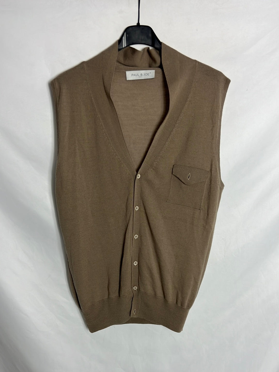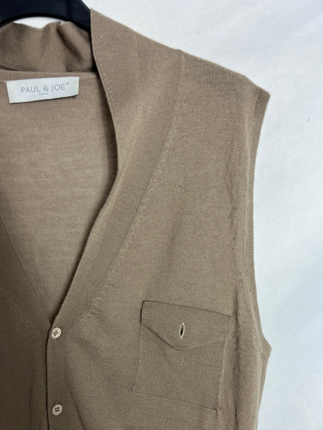 PAUL&JOE. Chaleco lana merino marrón claro. T S