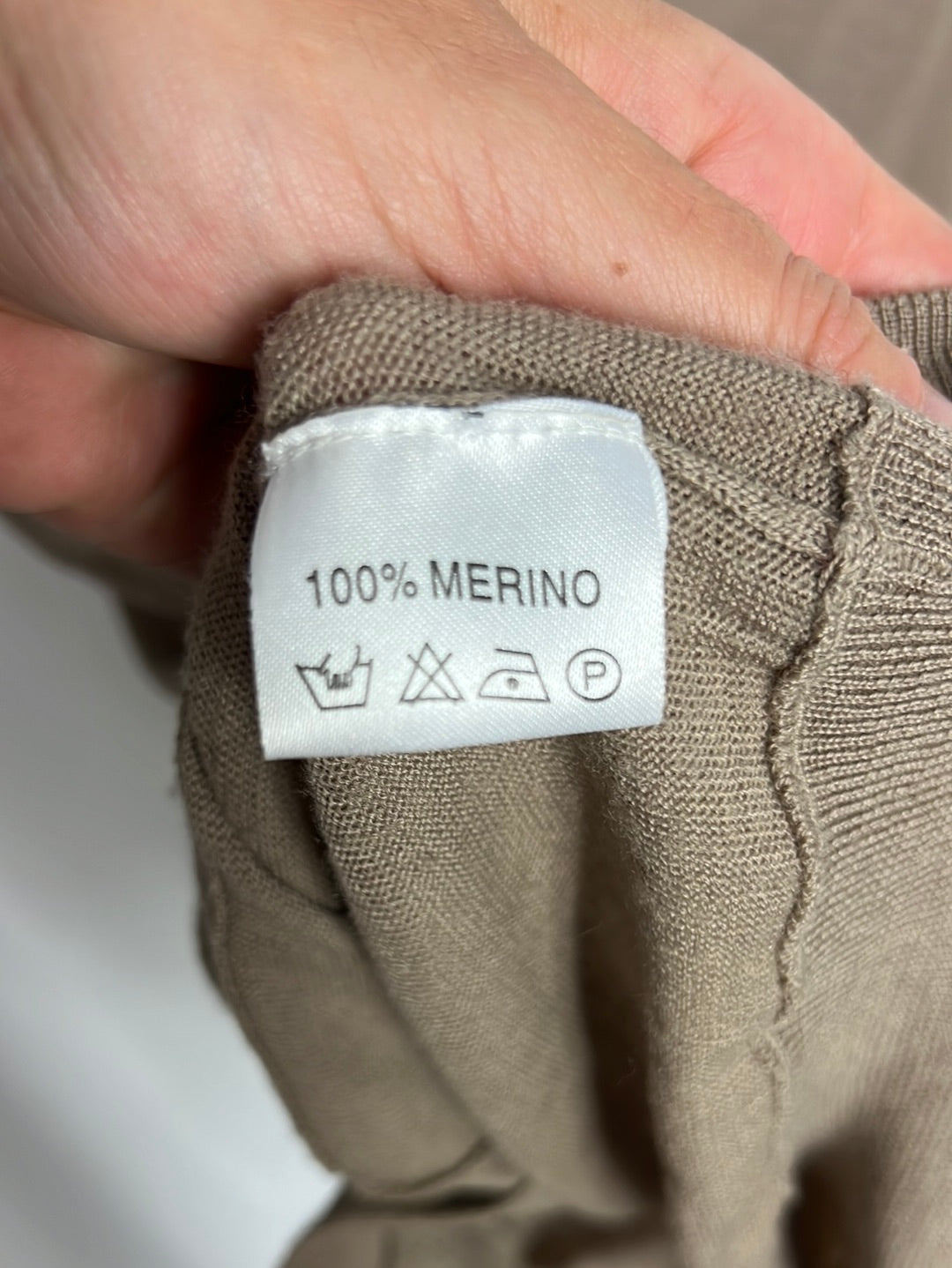 Chaleco marrón claro 100% Merino. Largo 68cm