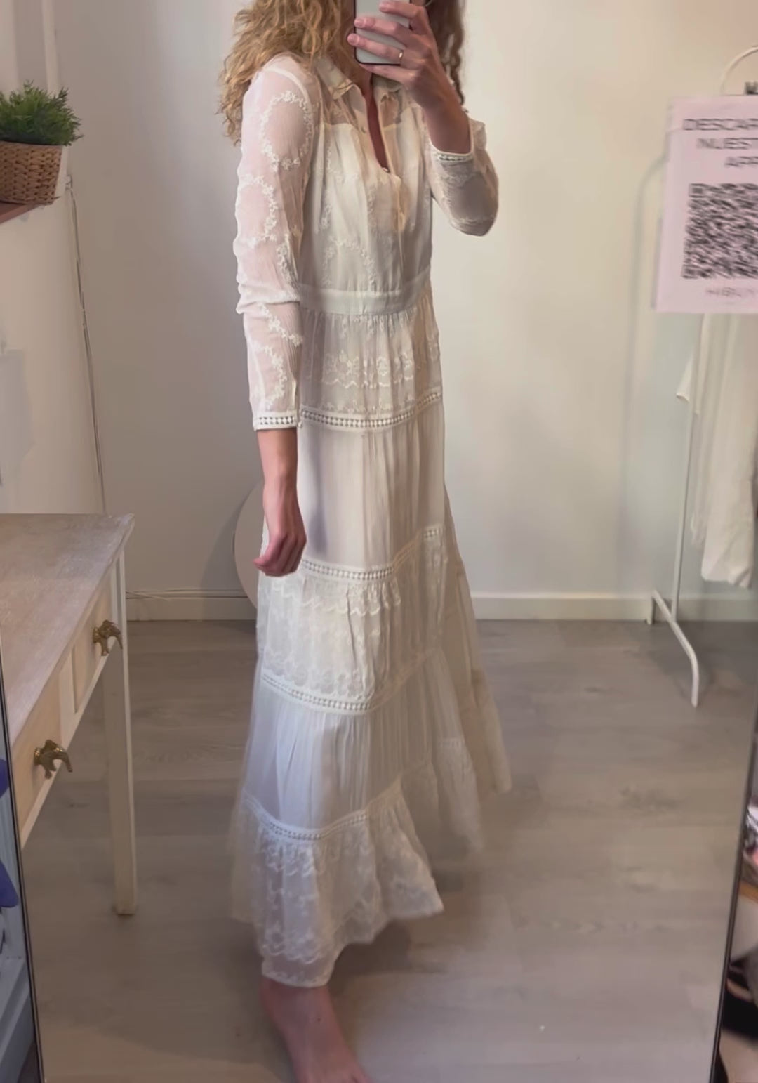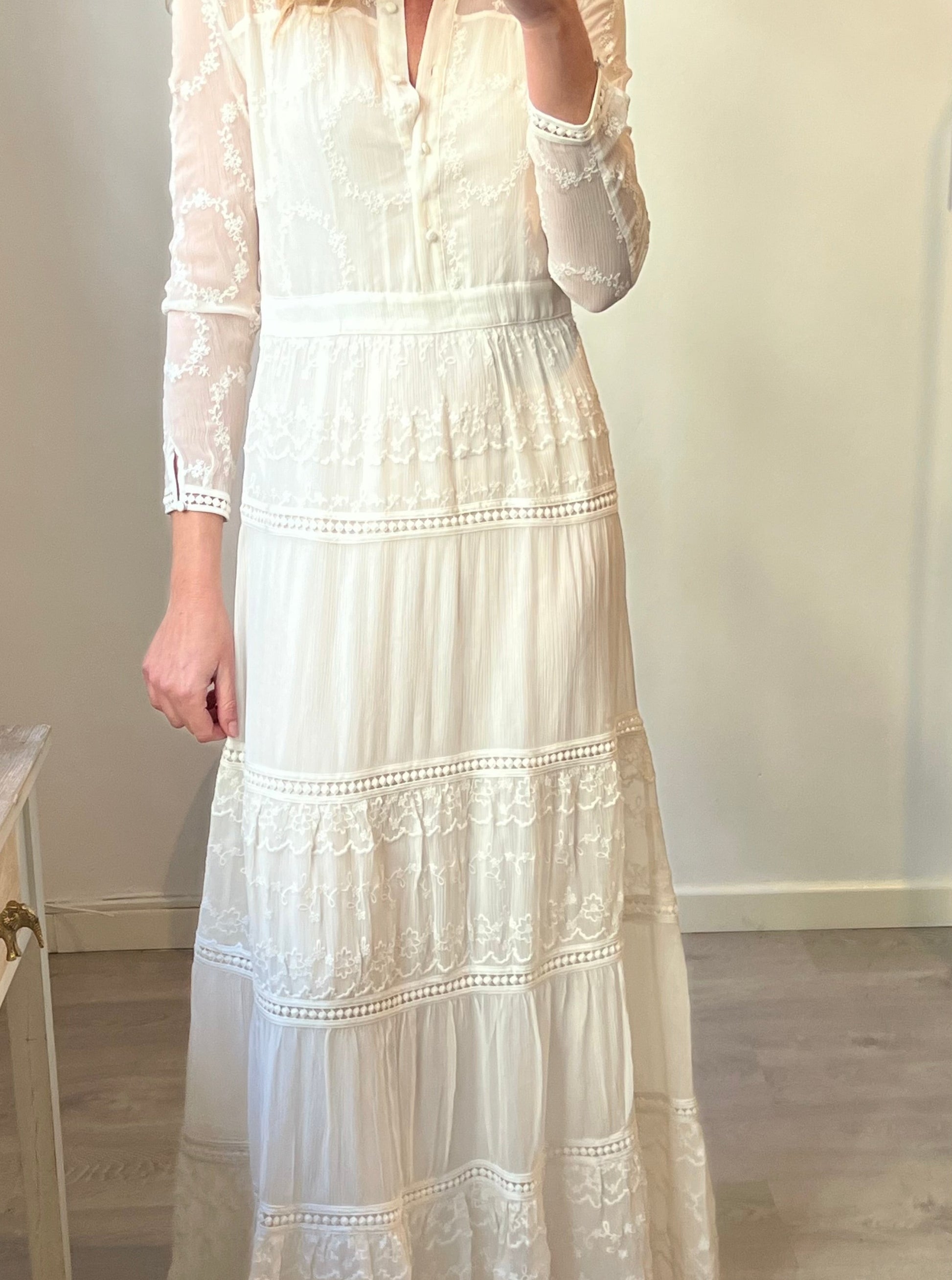PAUL&JOE. Vestido largo seda bordado. T 42 (M/L)