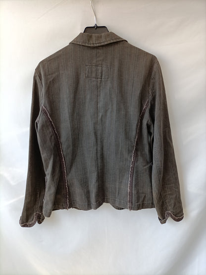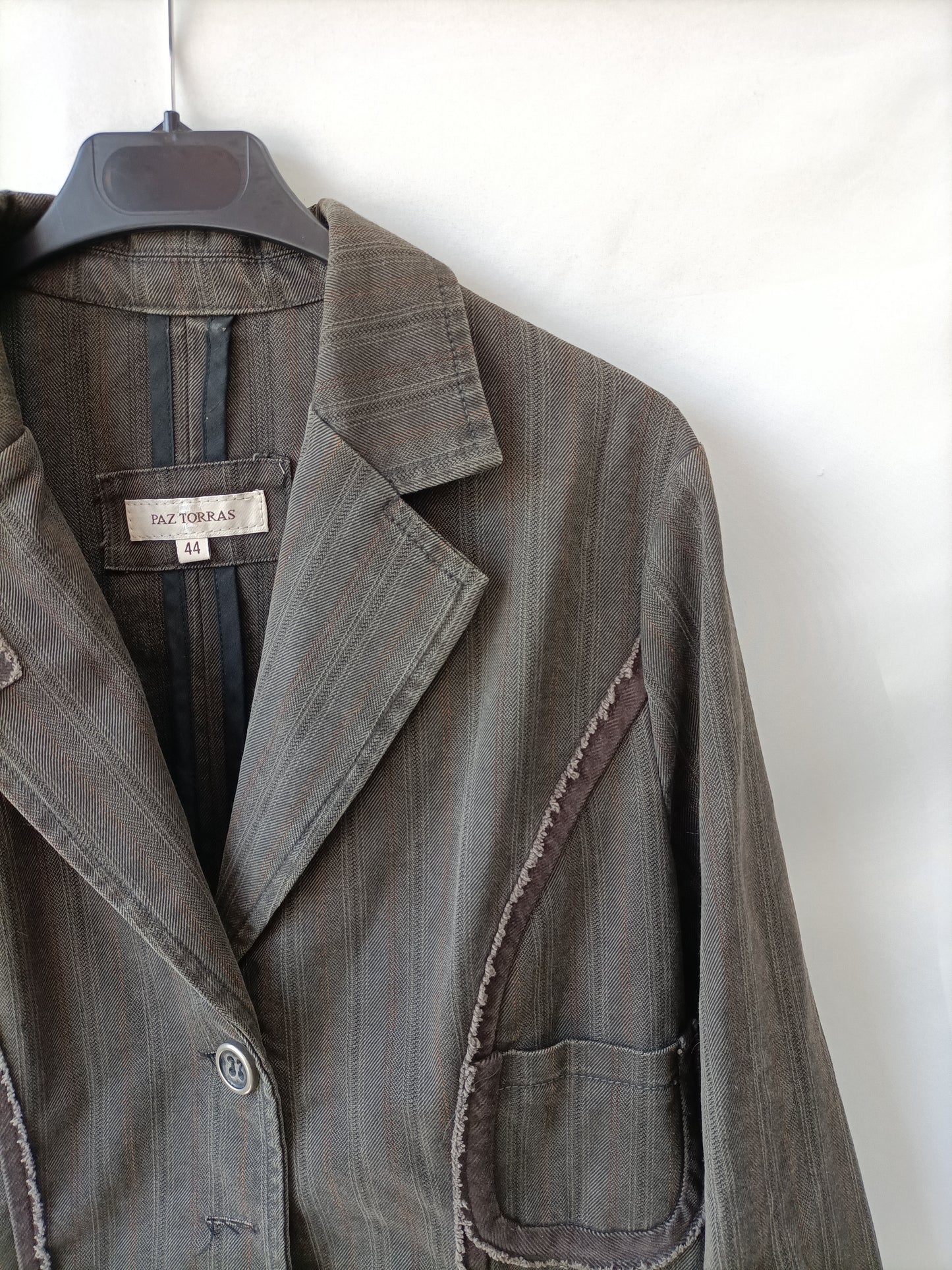 Blazer marrón de rayas. fluida no es elástico. Detalles de flecos. Total look vintage con el pantalón. De sisa a sisa 50 cm largo 61 cm