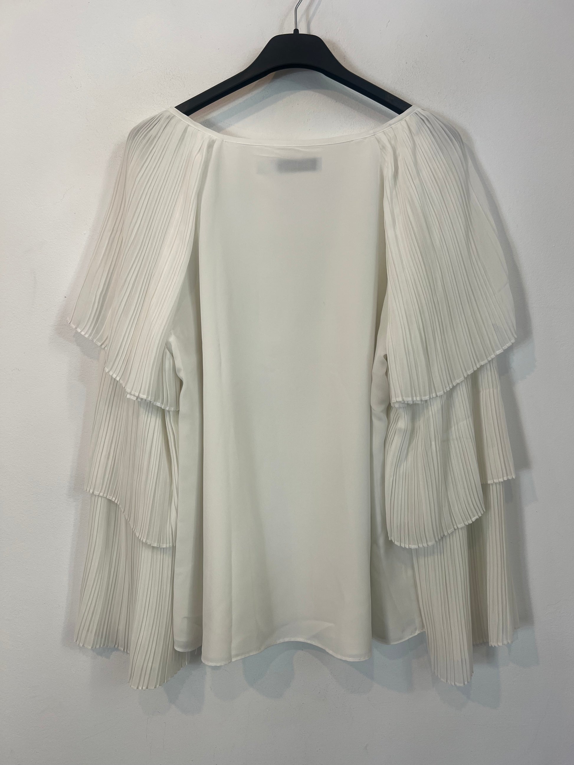 blusa fluida manga volantes. No elástica. de sisa a sisa 50 cm, largo 64 cm.