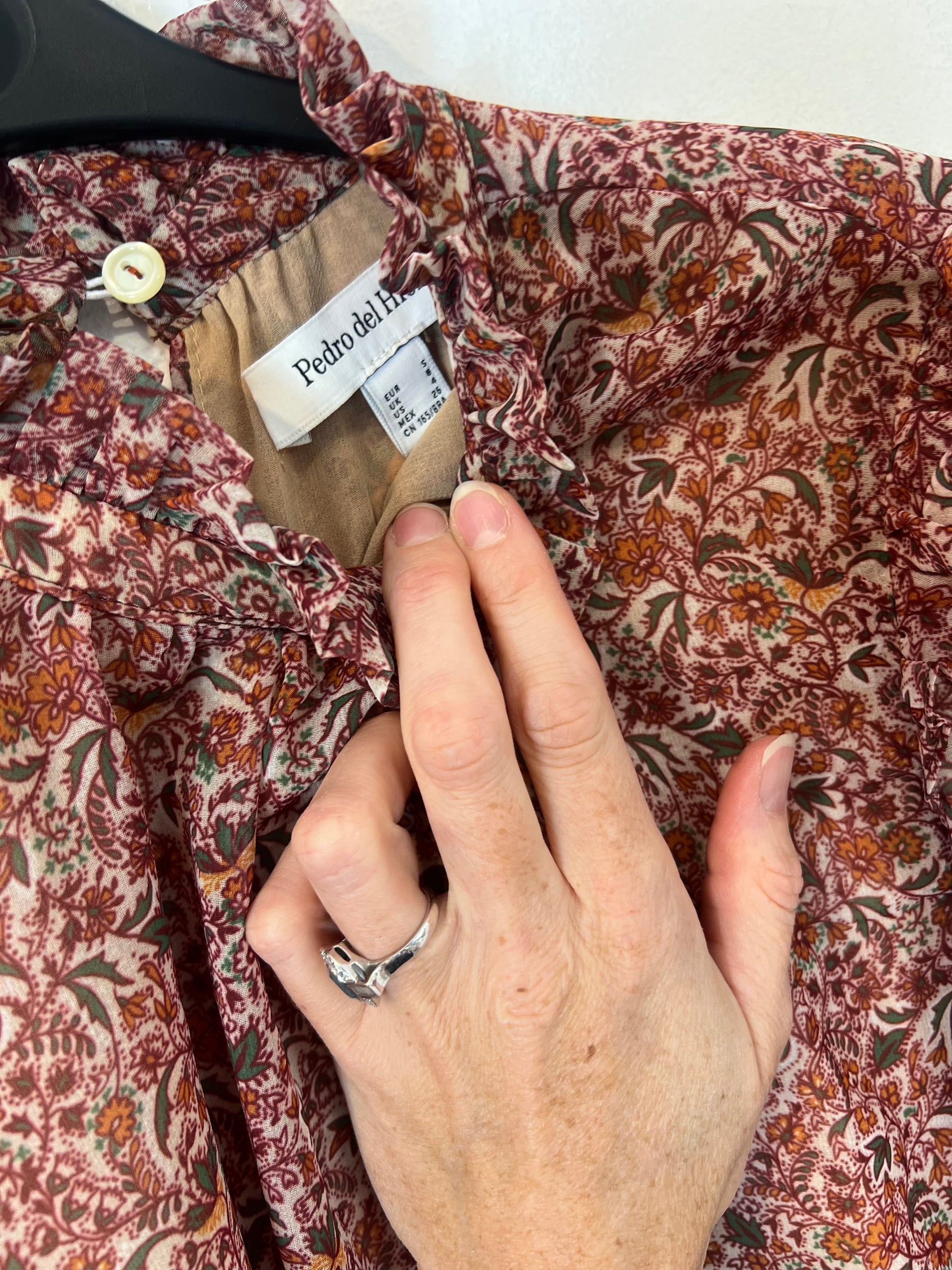 PEDRO DEL HIERRO. Blusa fluida flores burdeos T.s