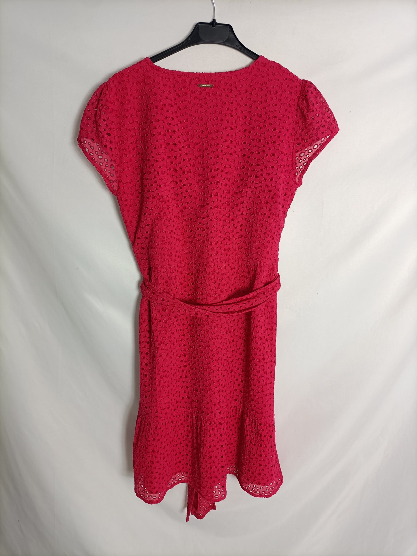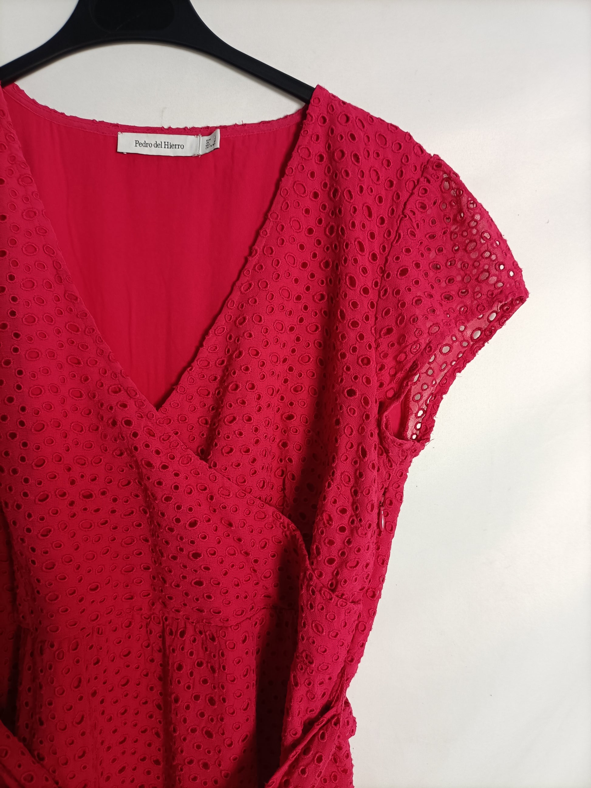 PEDRO DEL HIERRO. Vestido fucsia troquelado t. L