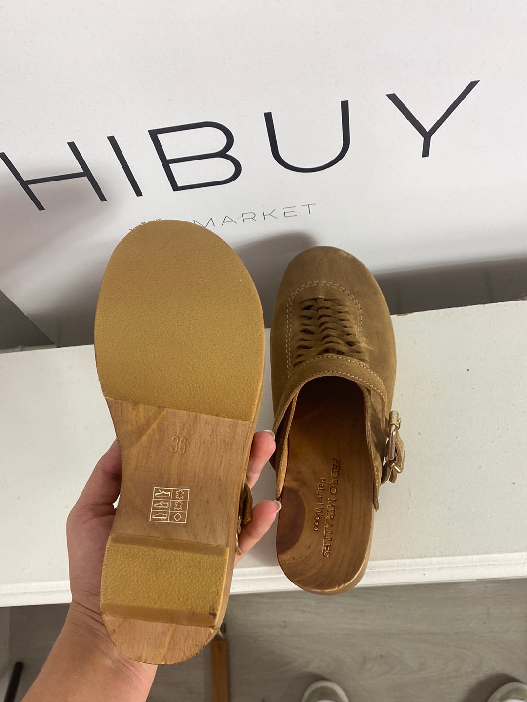 PEDRO MIRALLES. Zuecos beige de piel T.36