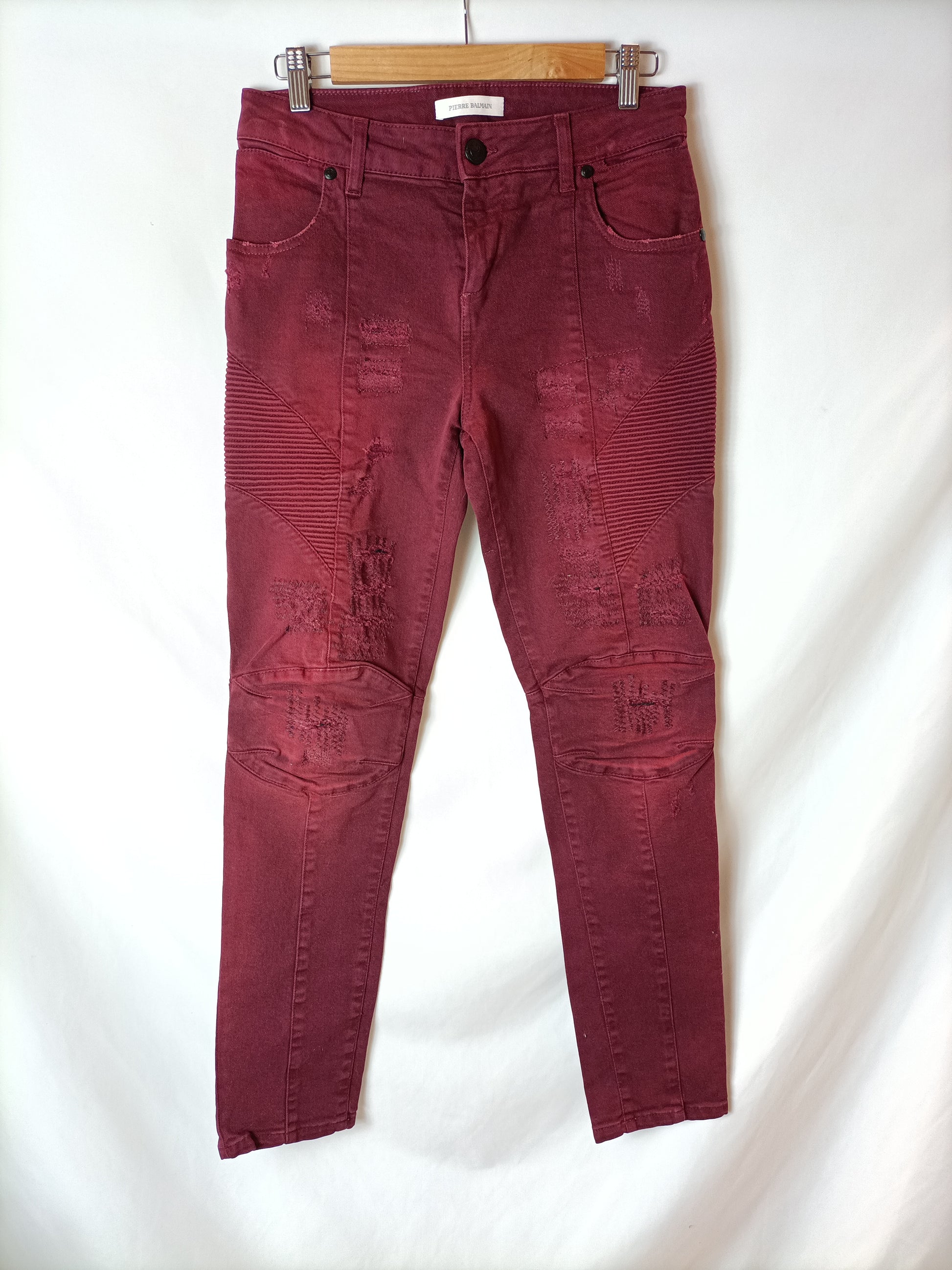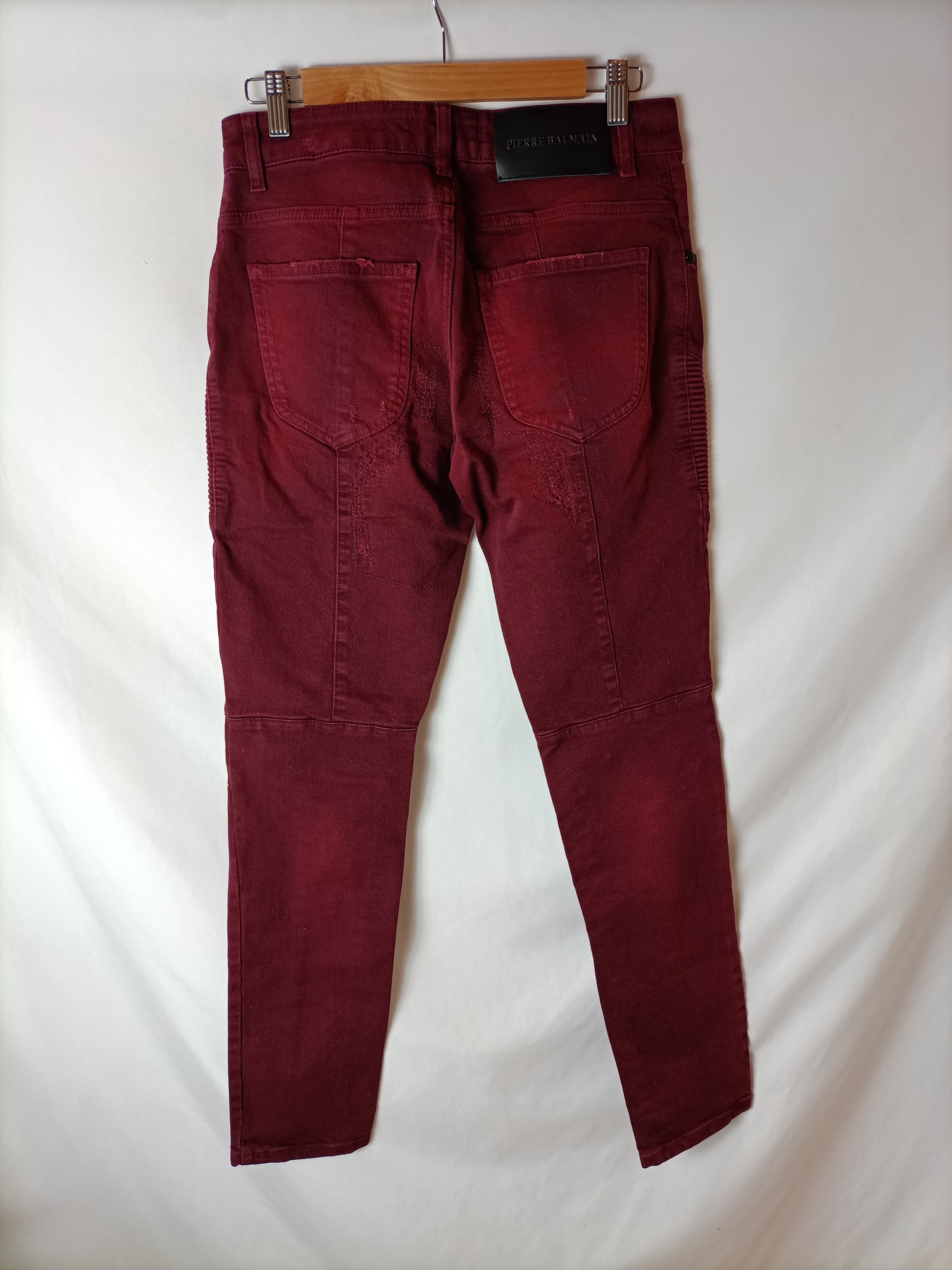 PEERRE BALMAIN. Pantalón burdeos denim T.28(40)