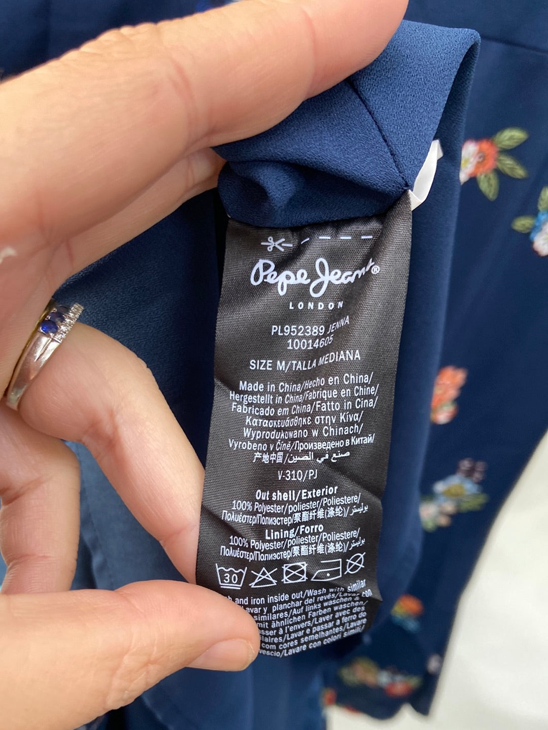 PEPE JEANS.Vestido azul flores T.M