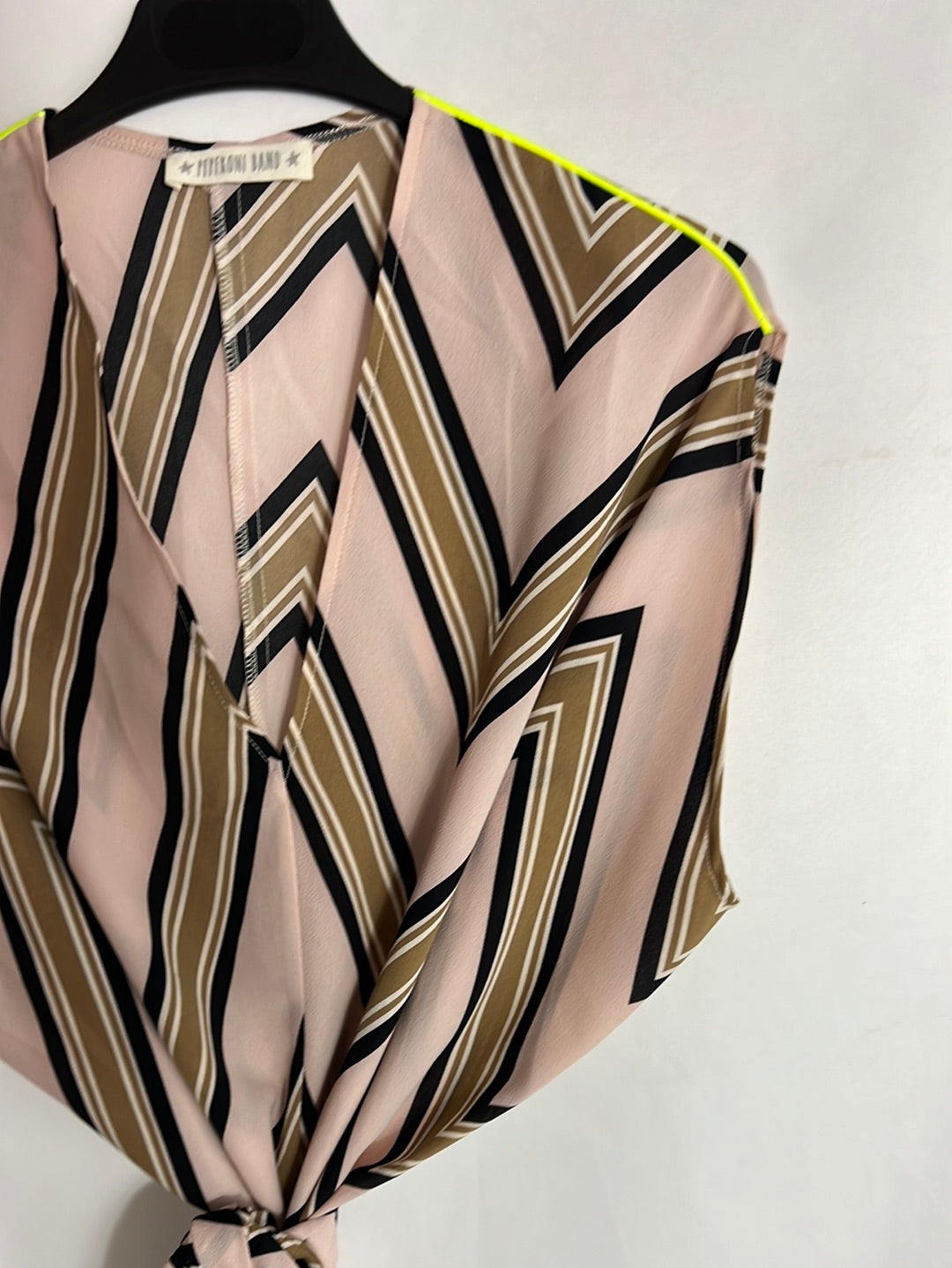 PEPERONI BAND. Vestido rosa claro estampado efecto túnica. T S/M