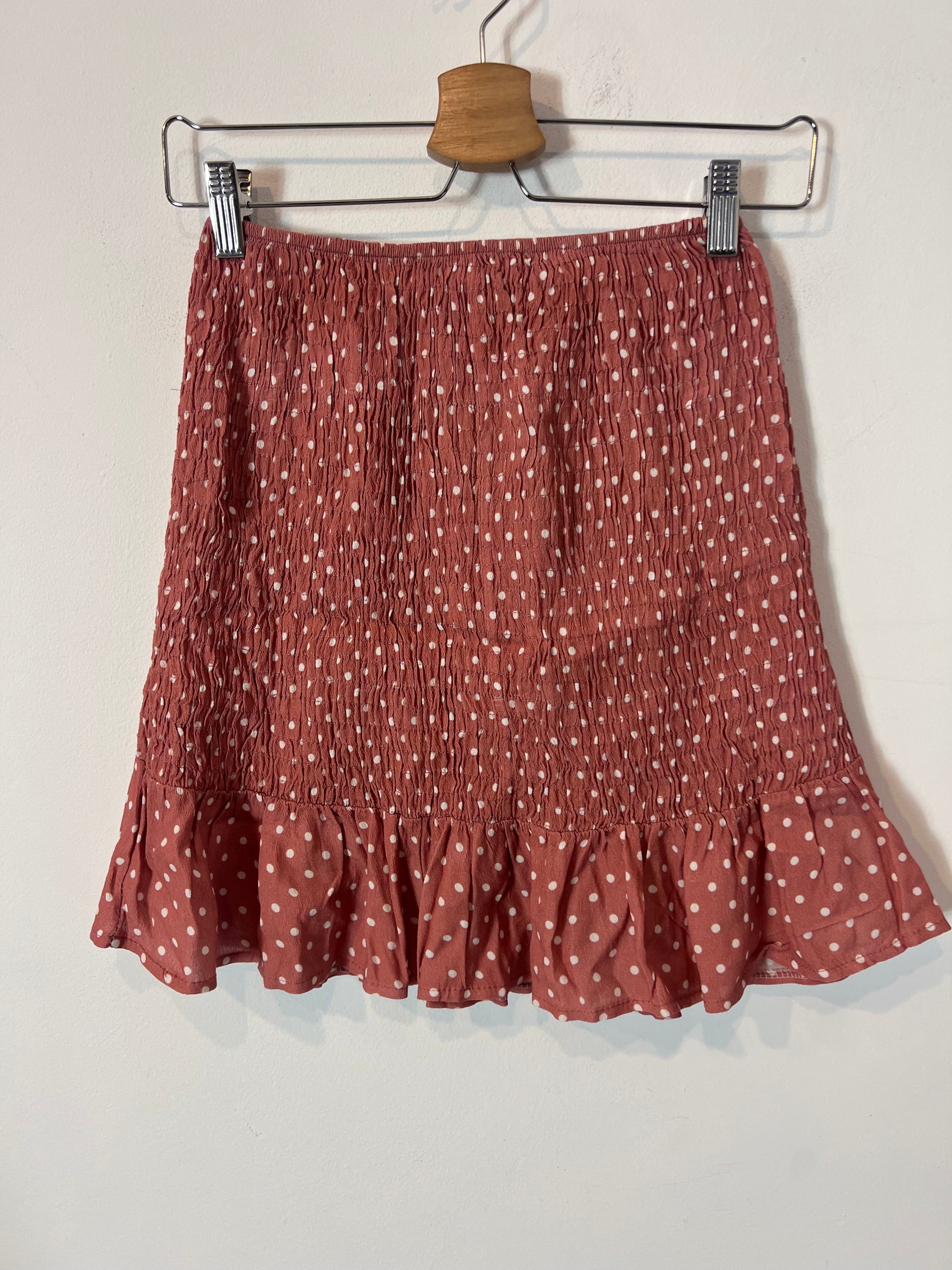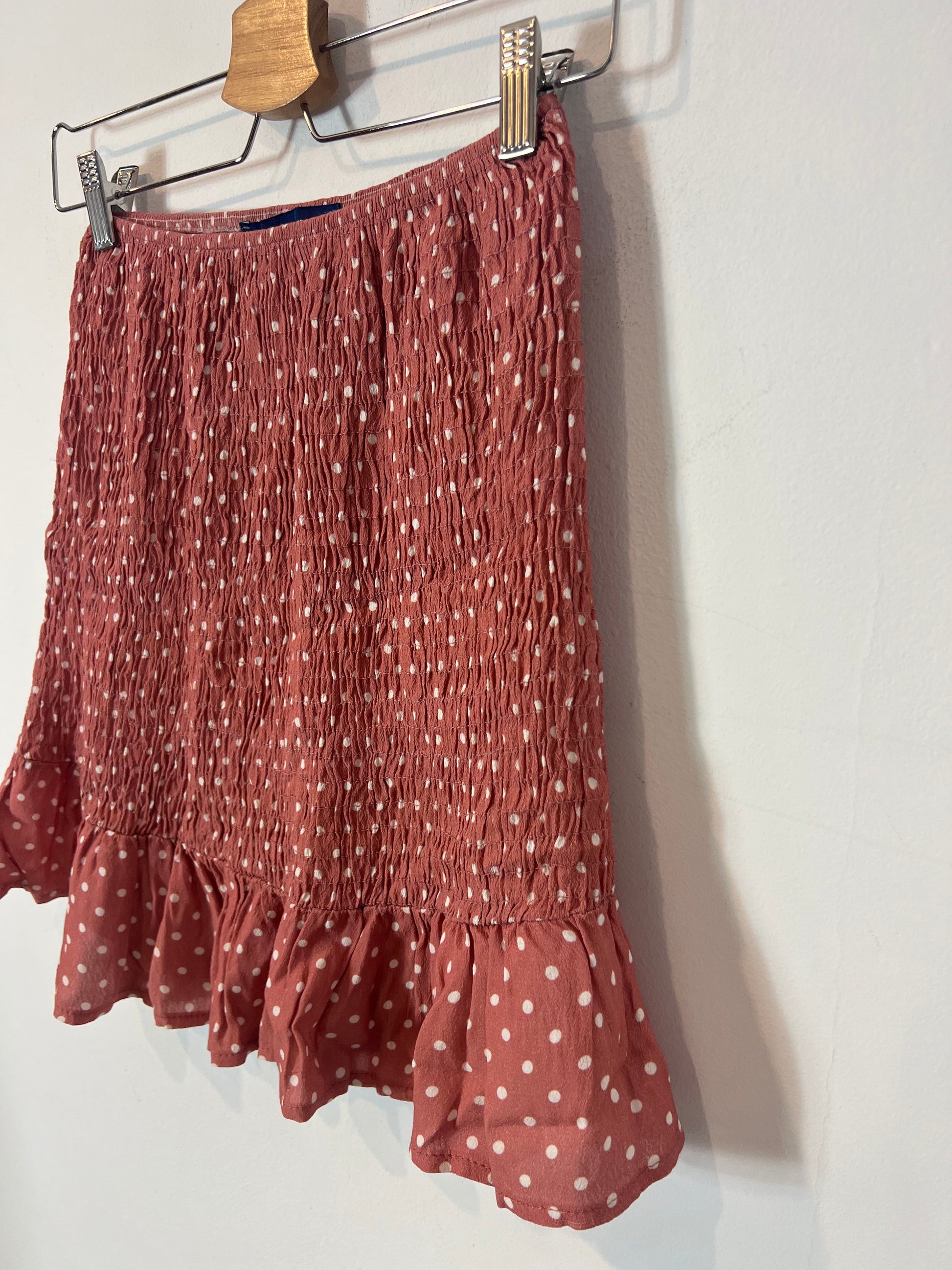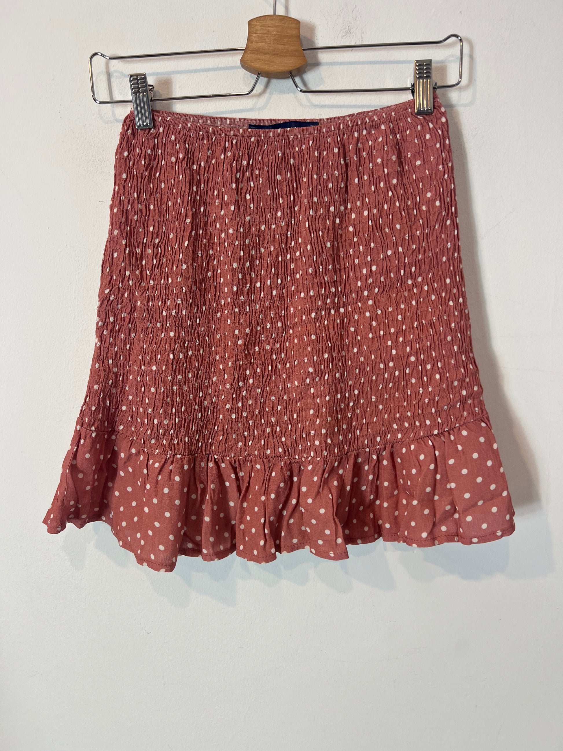 falda corta rosa con lunares de nido de abeja elástico. Largo 44cm