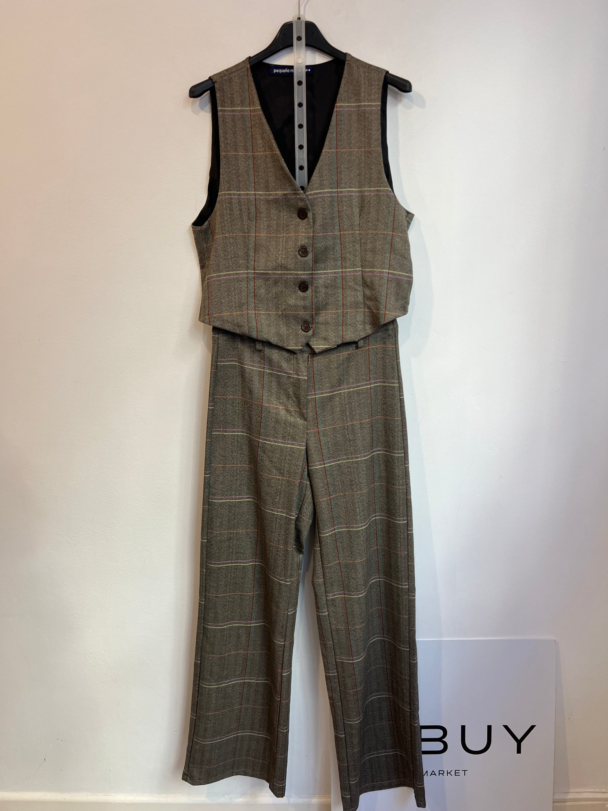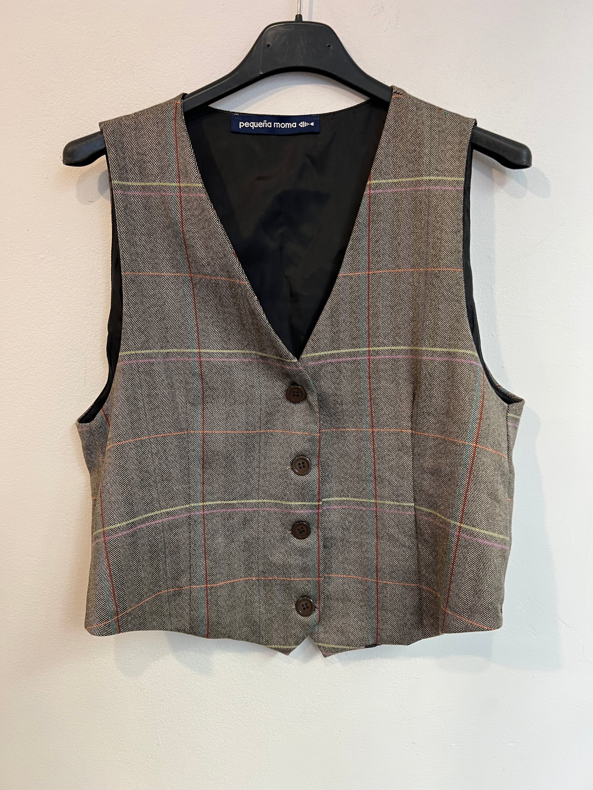 PEQUEÑA MOMA. Total look pantalón y chaleco cuadros. T S/M
