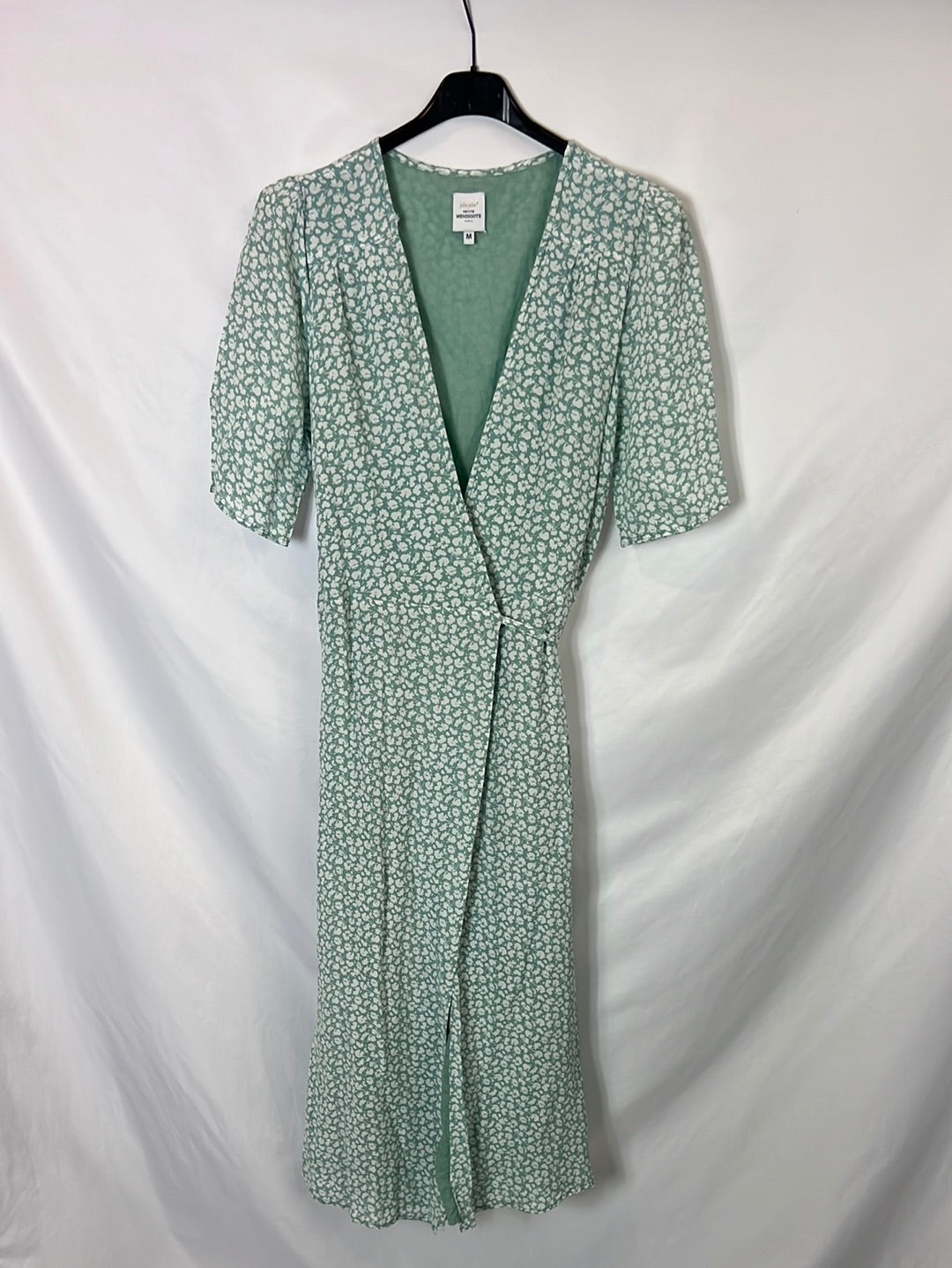 vestido midi amarillo pastel cruzado con flores . Largo 118cm