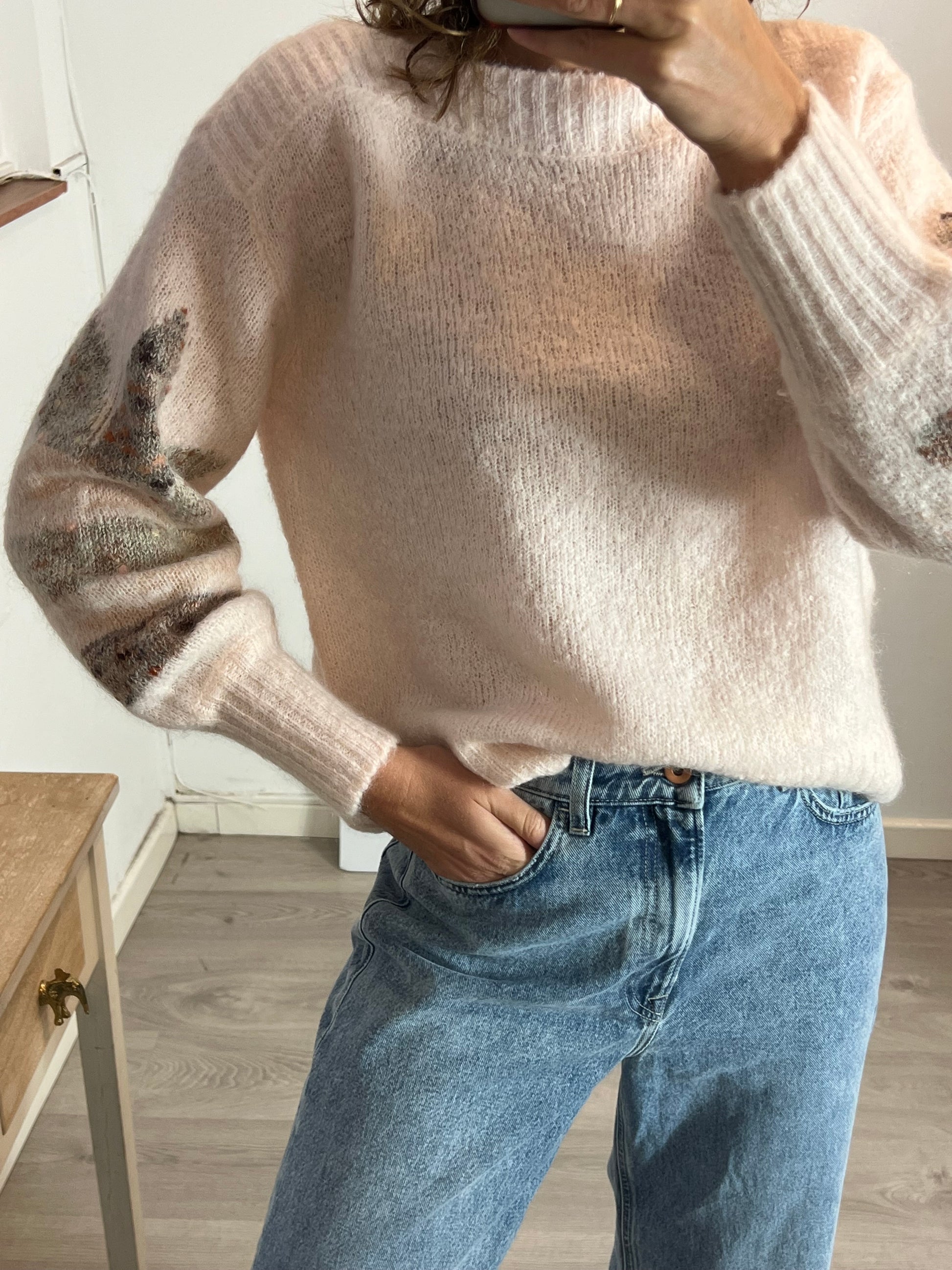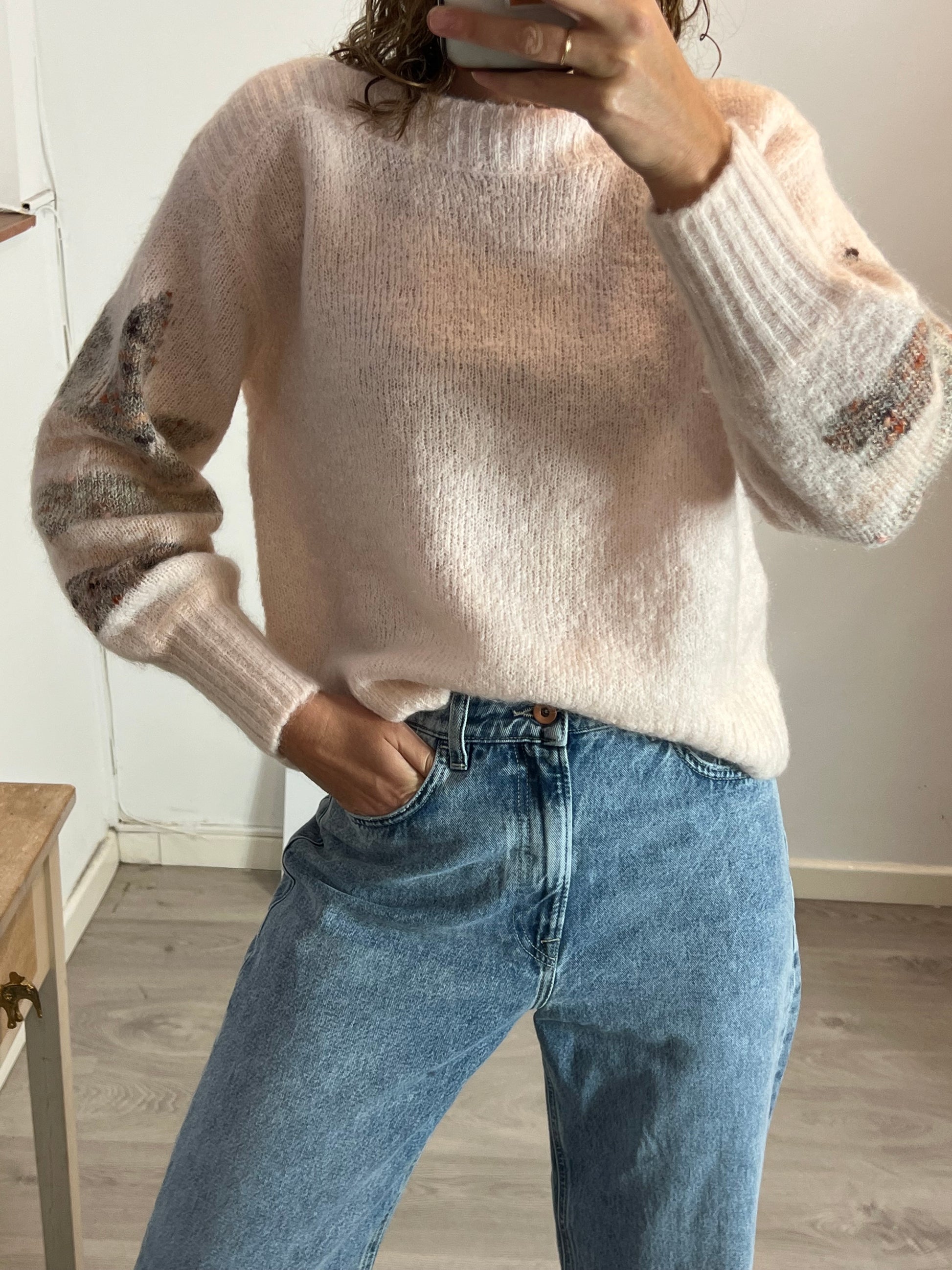 Jersey rosa clar cuello barco detalles mangas